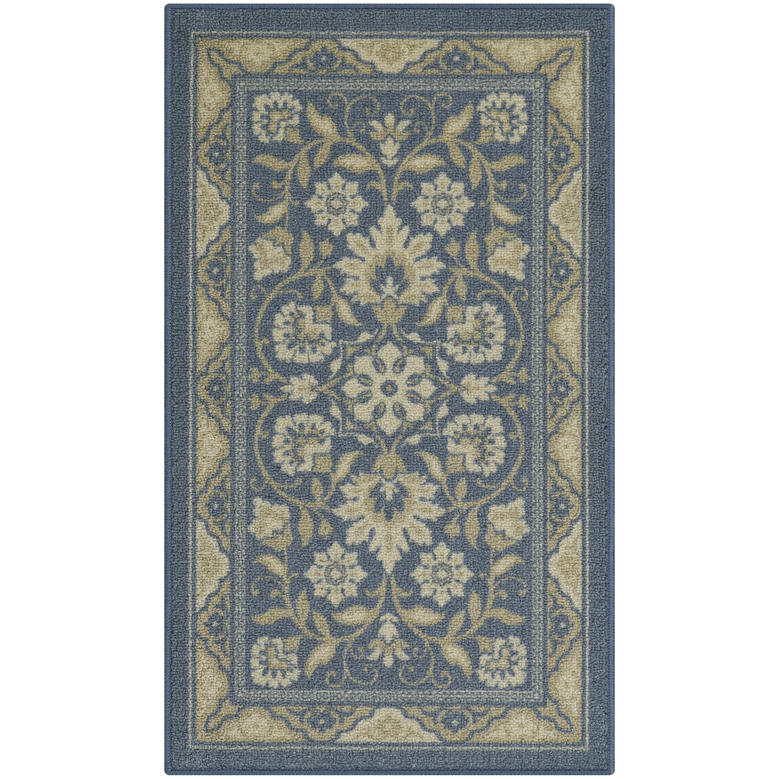 Maples Rugs Blooming Damask Kitchen Rugs Non Skid Accent Area Floor Mat [Made in USA], 2'6 x 3'10, Grey/Blue