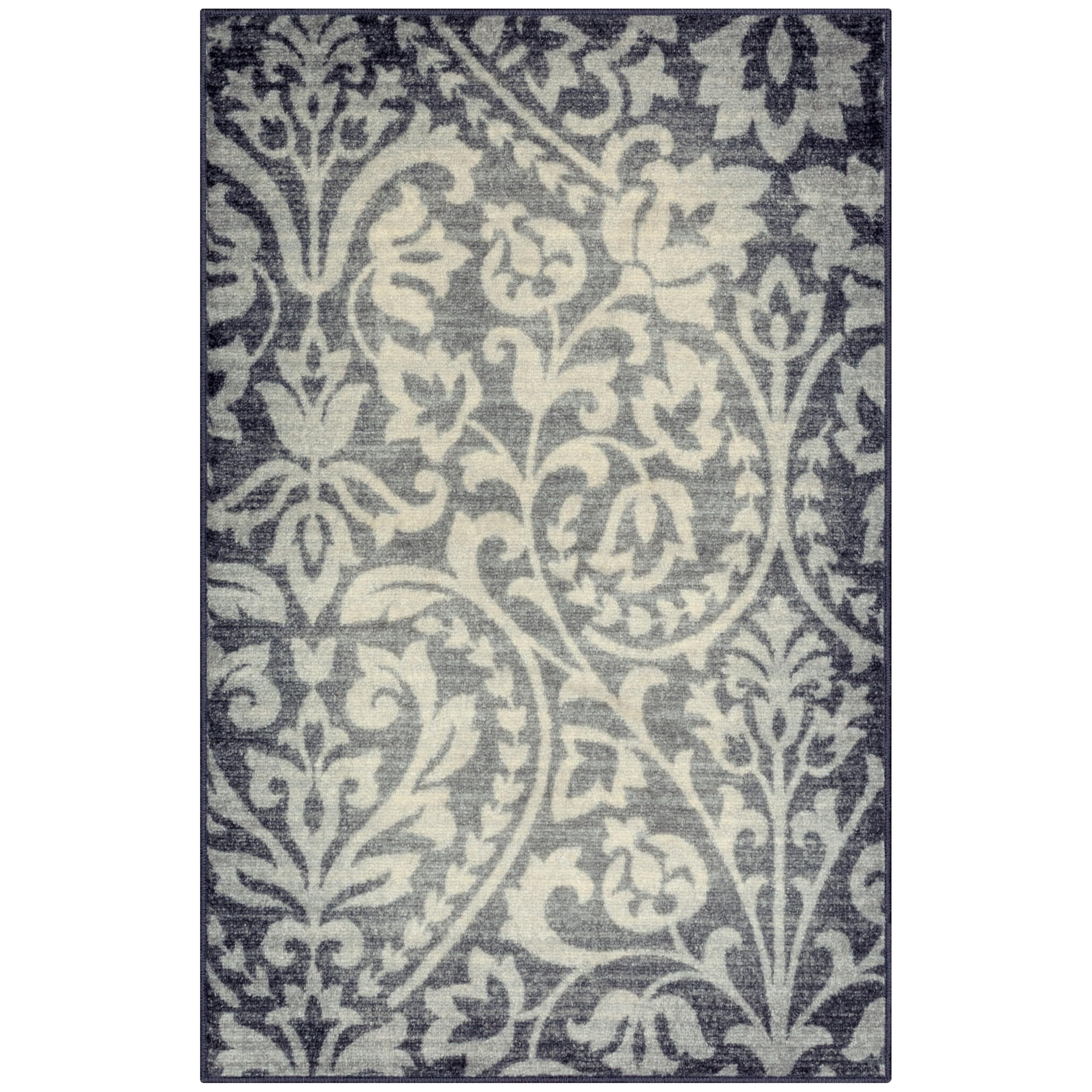 Maples Rugs Blooming Damask Kitchen Rugs Non Skid Accent Area Floor Mat [Made in USA], 2'6 x 3'10, Grey/Blue