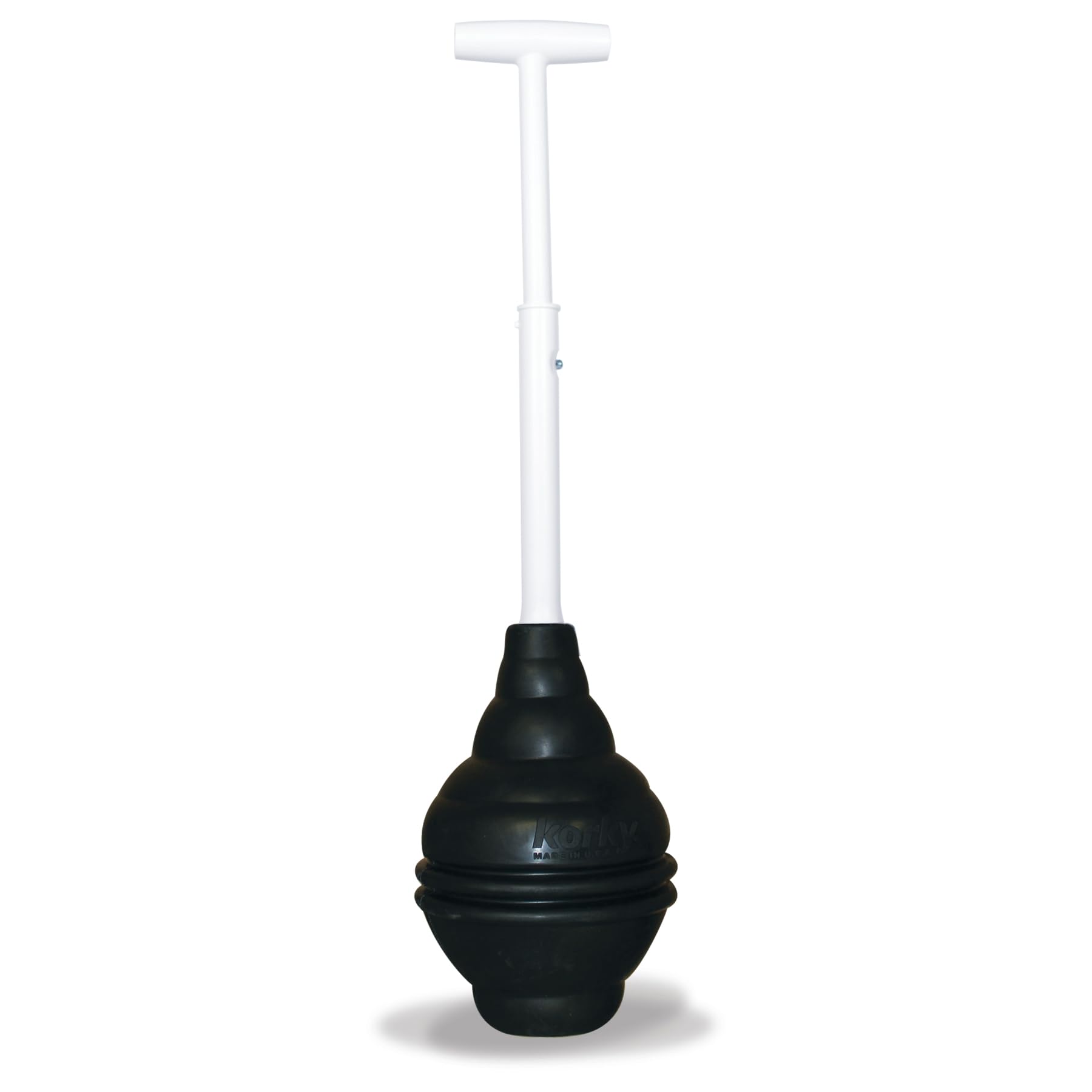 Brand: Korky Color: Black Features: POWERFUL PLUNGE: This toilet plunger is the first plunger designed to fit old & new...