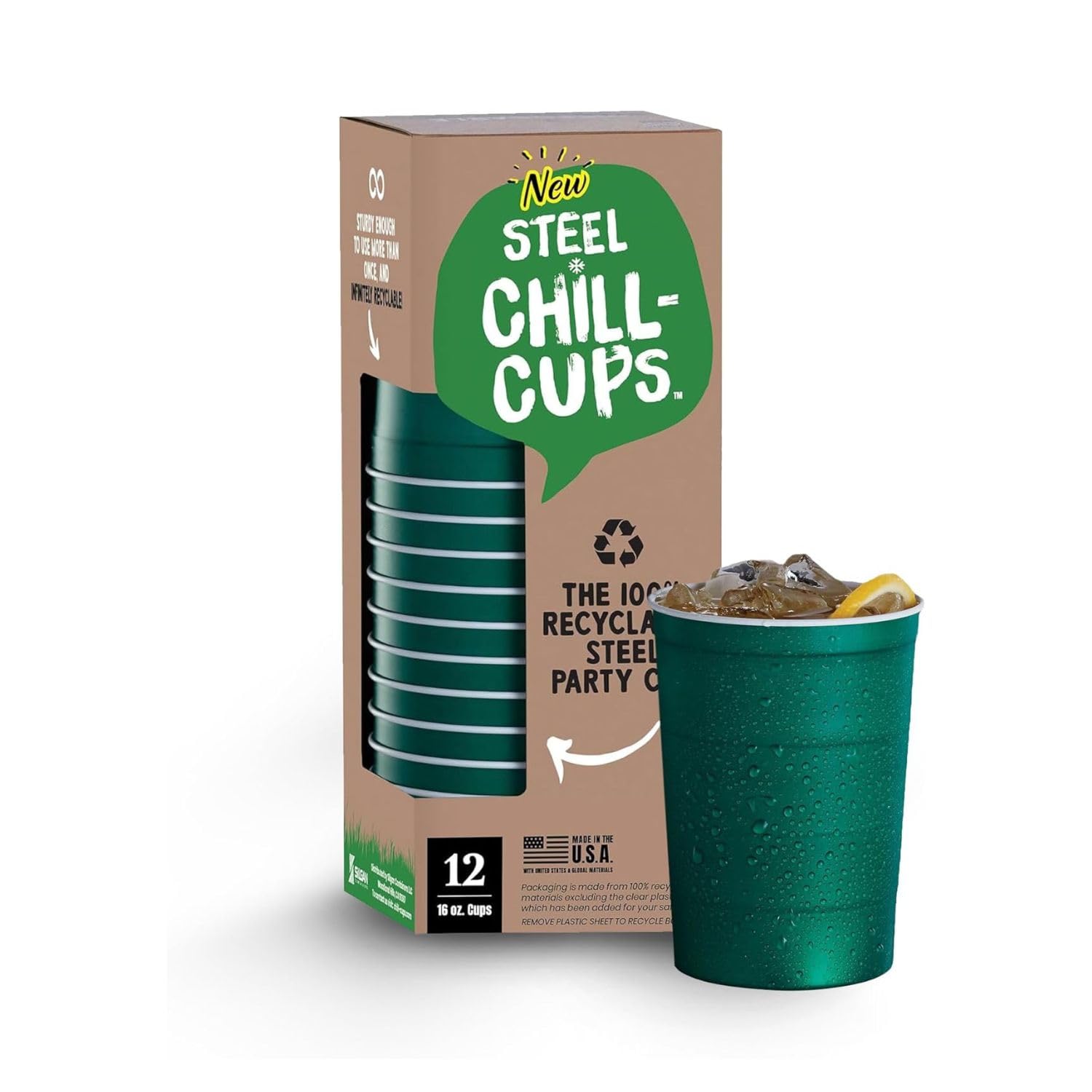 Steel Chill Cups 16 oz. Party Cups, Perfect for Cold Drinks, Sturdy & Durable, Disposable and 100% Recyclable, Made in USA