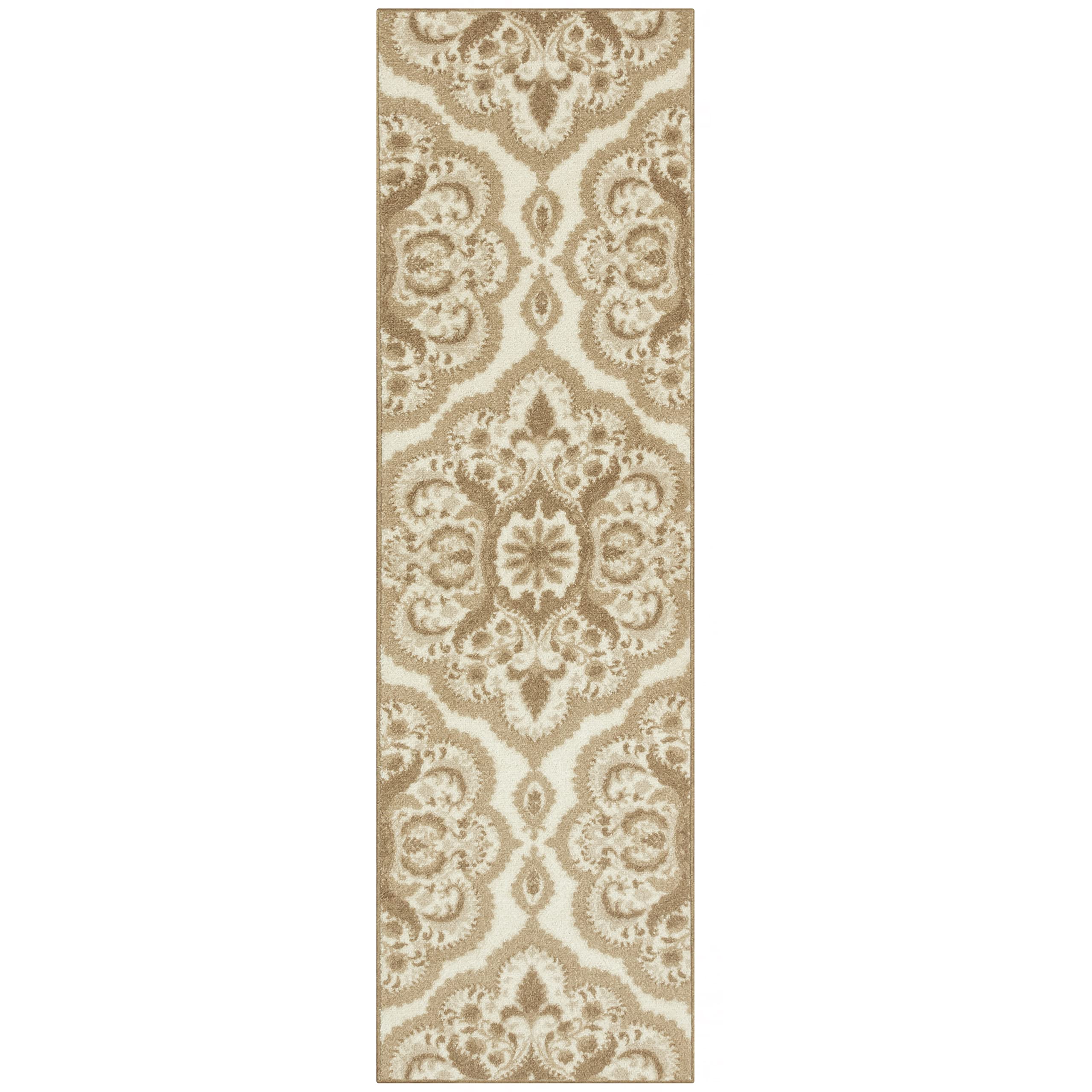 Maples Rugs Vivian Medallion Runner Rug - Made in USA - Washable, Non Slip, Indoor Carpet for Hallway, Kitchen, and Laundry Room, 2' x 6', Beige