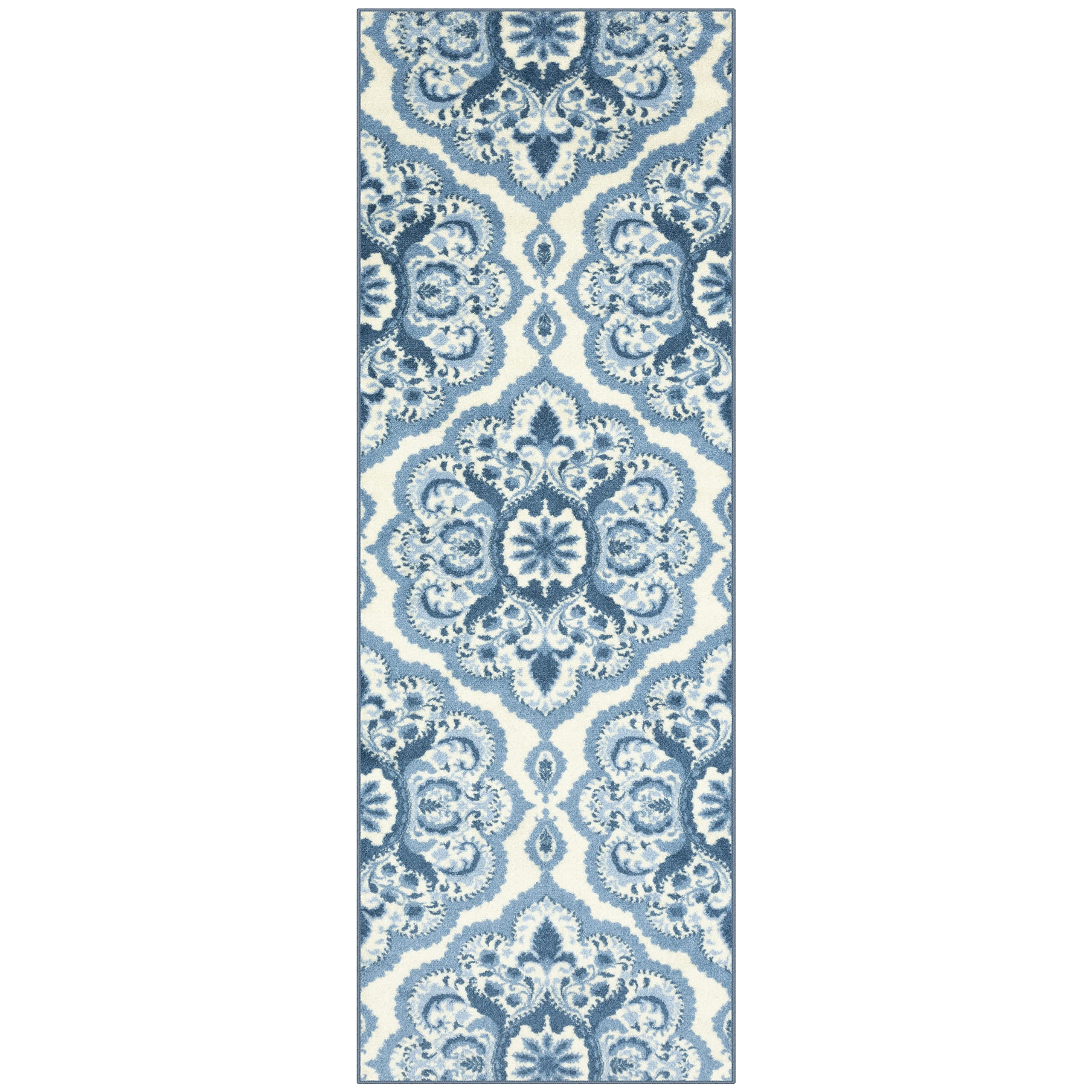 Maples Rugs Vivian Medallion Runner Rug - Made in USA - Washable, Non Slip, Indoor Carpet for Hallway, Kitchen, and Laundry Room, 2'6 x 8', Blue/White