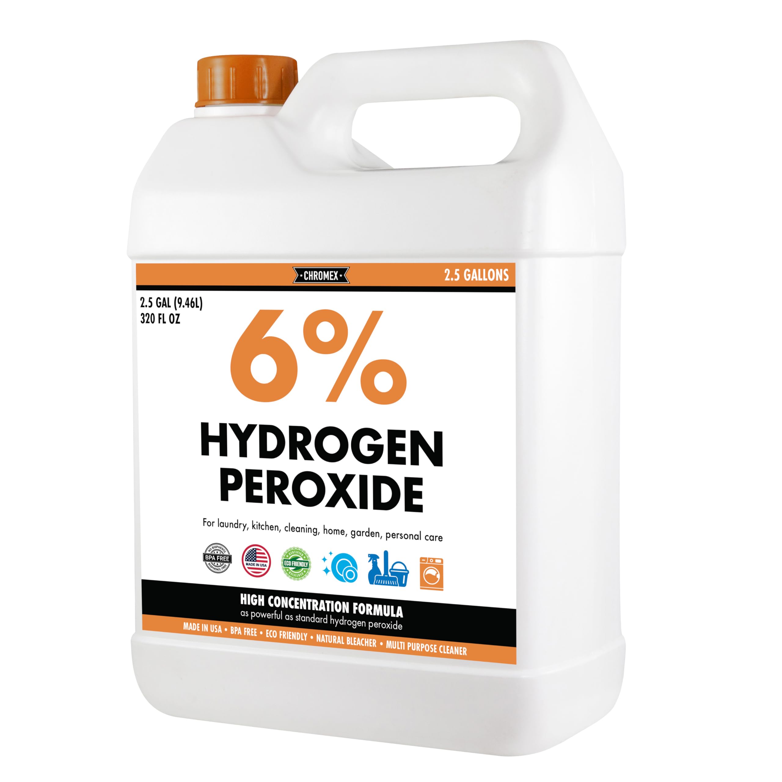 Chromex 6 Percent Hydrogen Peroxide, Food Grade, Home, Kitchen, Bath Cleaner, Laundry, Whitening, 2.5 Gallons