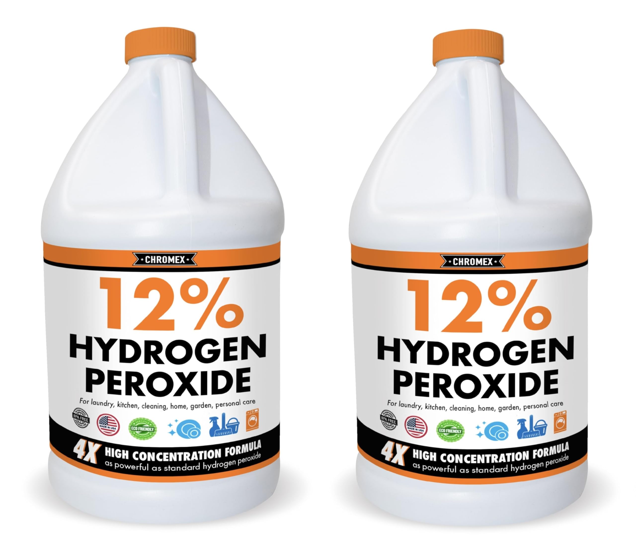 Chromex Hydrogen Peroxide 12 Percent Food Grade, 4x Power Concentrated Solution, 2 Gallons Dilute to 8 Gallons, Versatile Uses include Topical Care, Home, Kitchen, Bath Cleaner, Laundry, Whitening