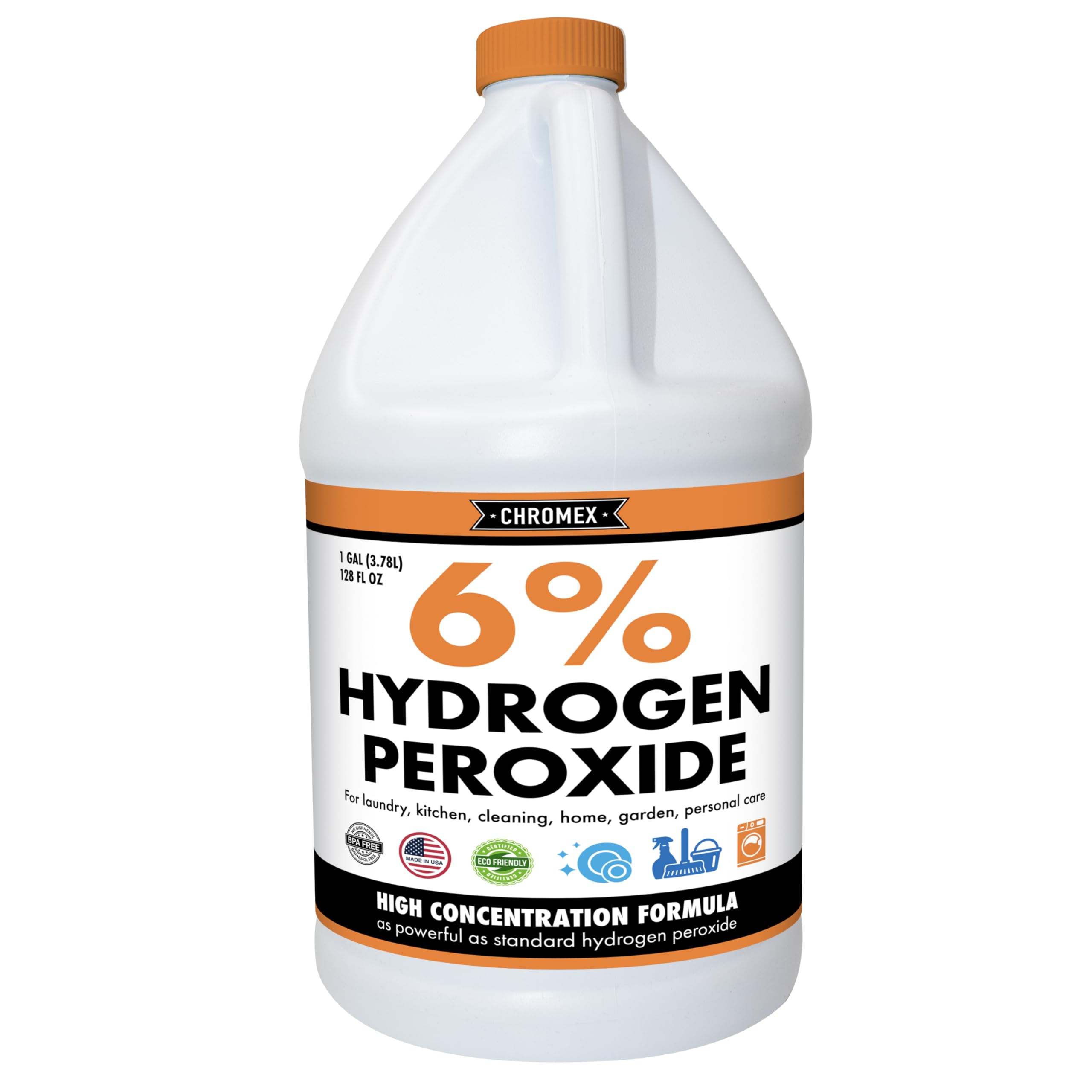 Chromex 6 Percent Hydrogen Peroxide, Food Grade, Home, Kitchen, Bath Cleaner, Laundry, Whitening (128 fl oz (Pack of 1))
