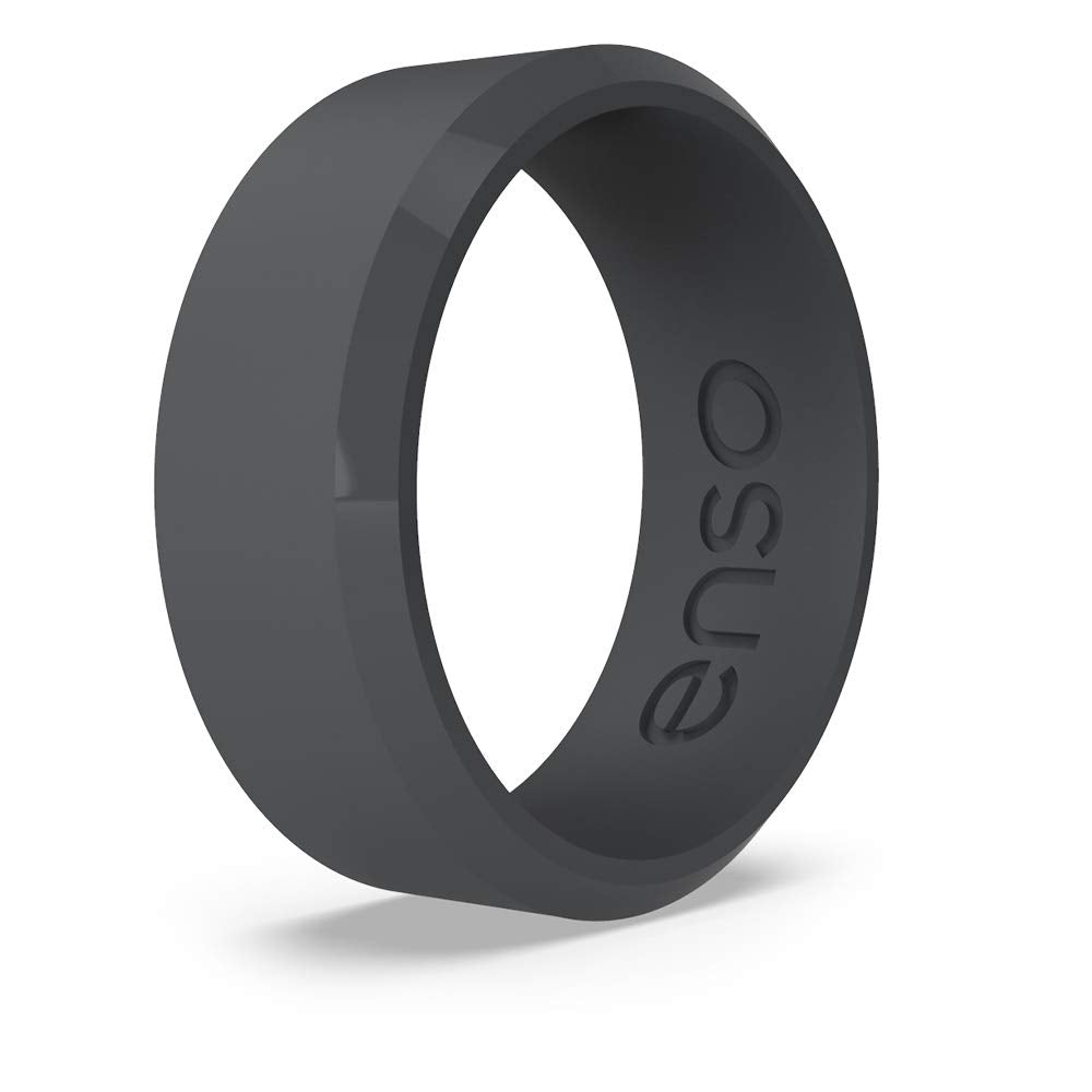 Enso Rings Bevel Classic Silicone Wedding Ring – Hypoallergenic Unisex Wedding Band – Comfortable Band for Active Lifestyle – 8mm Wide, 2.16mm Thick Slate