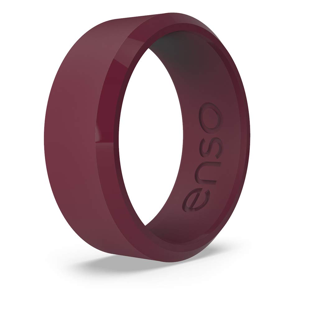 Enso Rings Bevel Classic Silicone Wedding Ring – Hypoallergenic Unisex Wedding Band – Comfortable Band for Active Lifestyle – 8mm Wide, 2.16mm Thick Oxblood