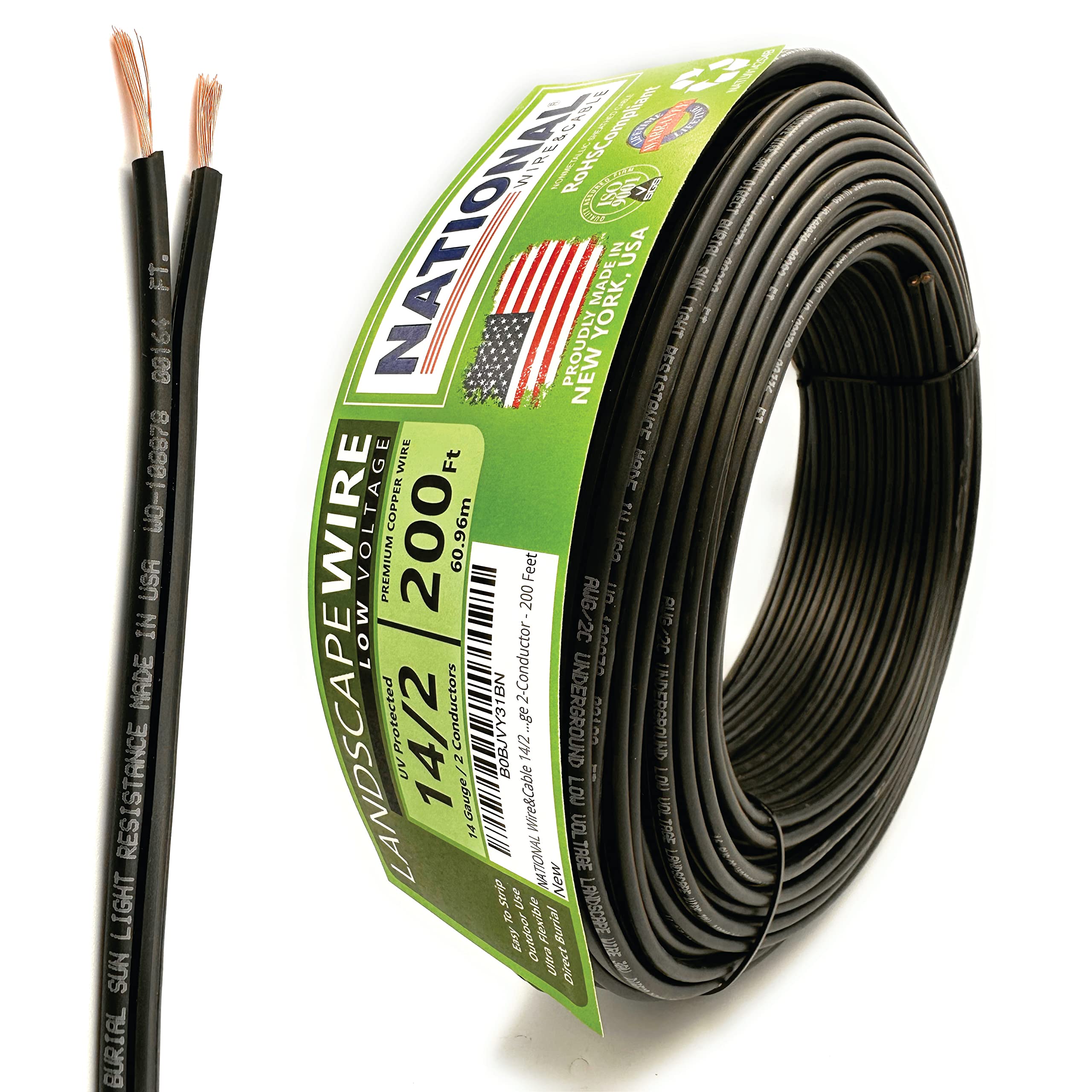 NATIONAL Wire&Cable 14/2 Low Voltage Landscape Lighting Copper Wire - Made in USA - 14-Gauge 2-Conductor - 200 Feet