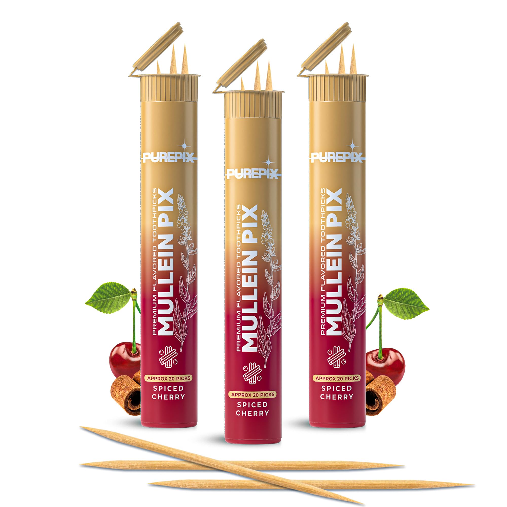 Mullein Pix, Extra Thick Flavored Toothpicks Infused with Mullein Leaf, Natural Quit Smoking Alternative, Lung Cleanse Support, Nicotine Free, Kosher Vegan, Made in The USA (Spiced Cherry 3 Pack)