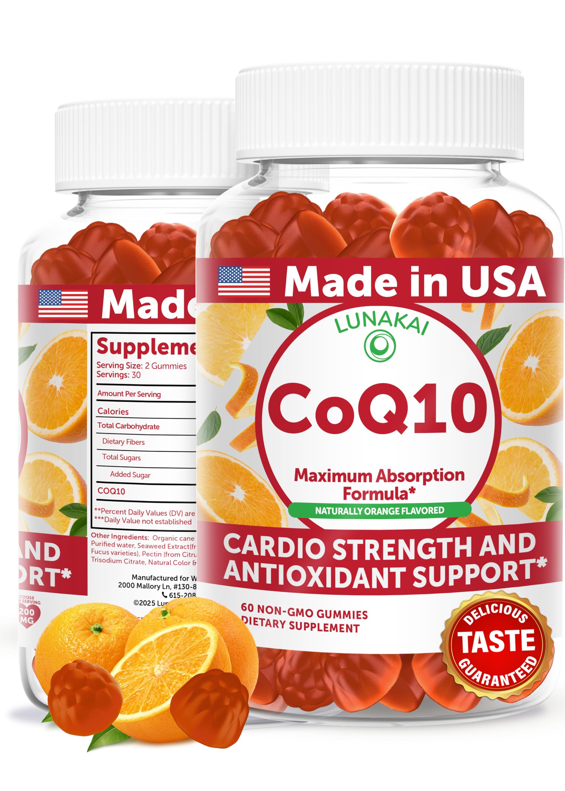 Lunakai USA Made CoQ10 Gummies for Adults 200mg – Coenzyme Q10 for Heart Health, Cellular Energy & Aging Support – Non-GMO, Vegan, 60ct