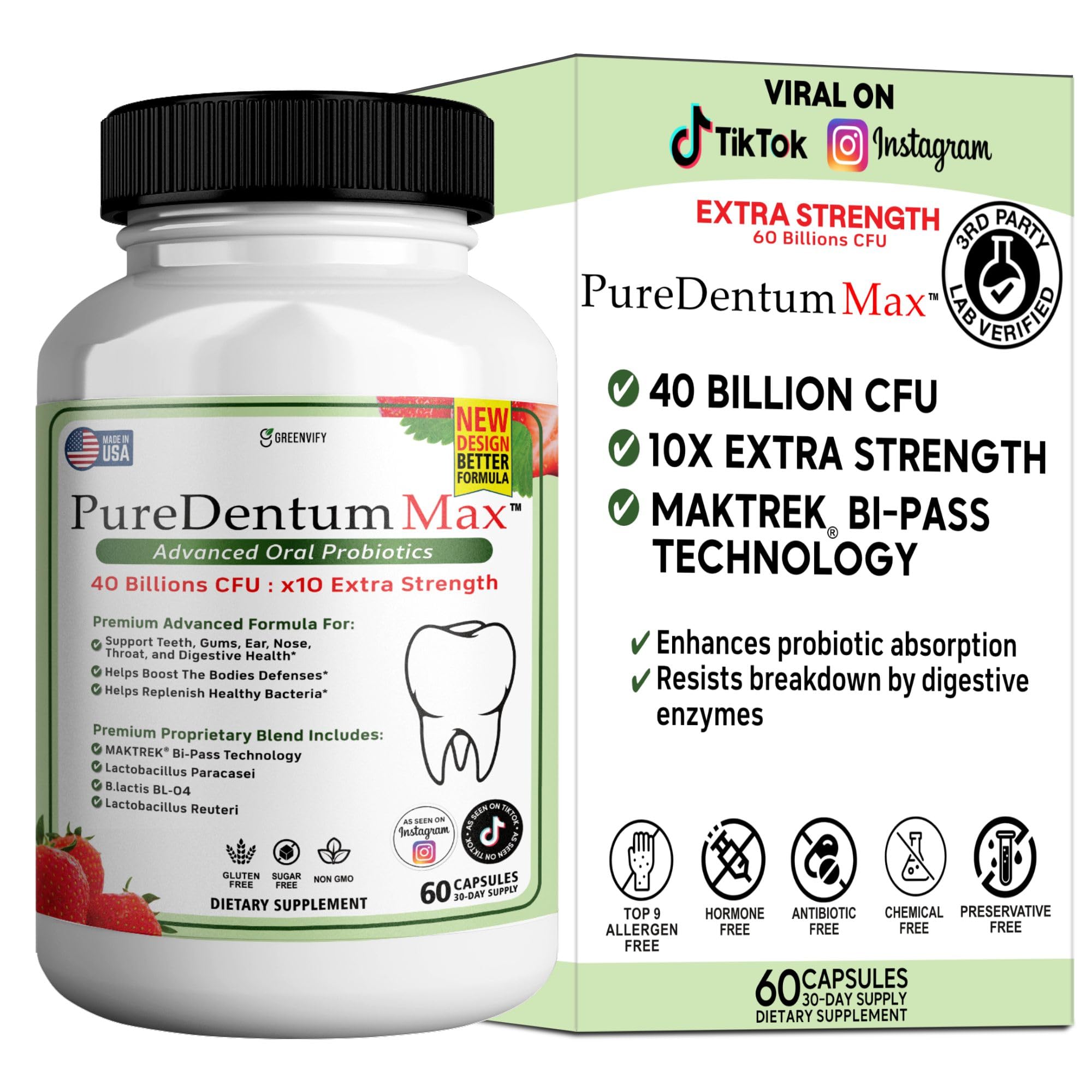 Puredentum Max Prodentim for Gums and Teeth Health & Fresh Breath - 40 Billion CFU Advanced Oral Probiotics for Mouth Bad Breath, Capsule Supplement (1)