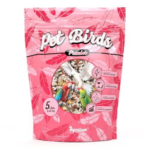 Mycelium Organic Pet Bird Premier Bird Seed (5 LBS) | Premium Food for Parrots, Cockatoos, & Large Birds | High-Protein, Vitamin-Fortified, Growth & Development Support | USA Made, Non-GMO