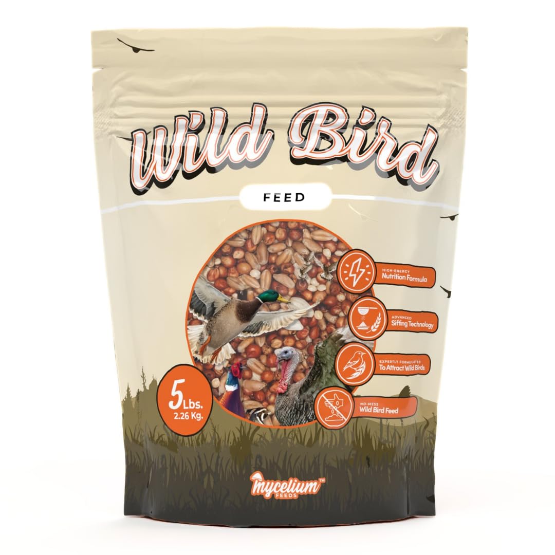 Mycelium Organic Wild Bird Feed (5 LB Bag) | Balanced Wild Bird Seed Mix for Turkeys, Pheasants, Quails & Cardinals | High-Energy Nutrition | Sifted, Non-GMO, Made in USA