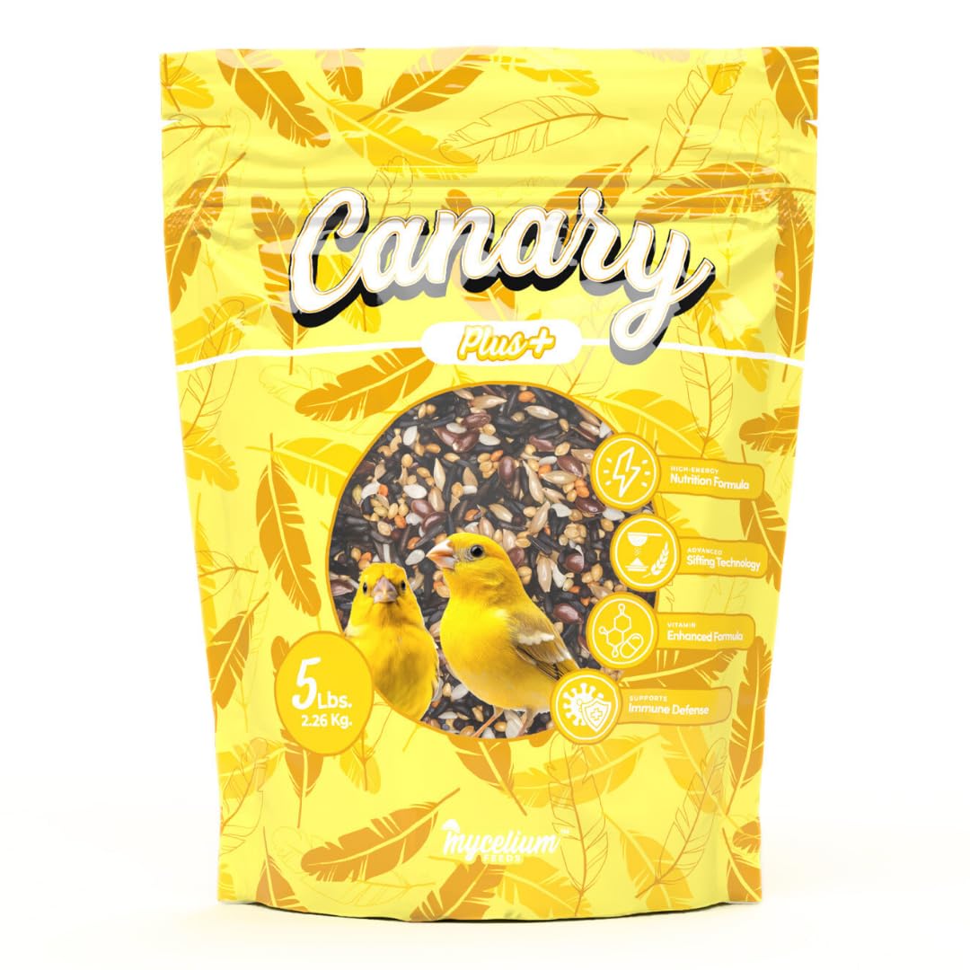 Mycelium Canary Plus Bird Seed (5 LB Bag) | High-Fat, Vitamin-Enriched Canary Food for Energy, Immune Defense & Feather Health | Organic Seed Blend for Small Pet Birds | Non-GMO & Made in USA