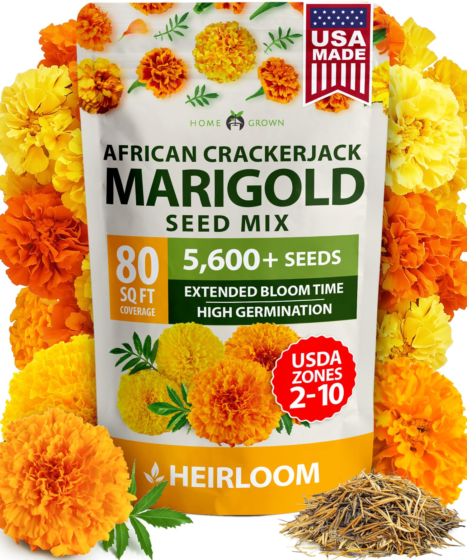 HOME GROWN Marigold Seeds Bulk Mix - 5600+π‘π’π‘-ππ π’,π¨π¦π Crackerjack Marigold Flower Seeds for Planting Outdoors -Flowers Seed for Companion Planting -Wildflower African Marigold(Tagetes erecta)