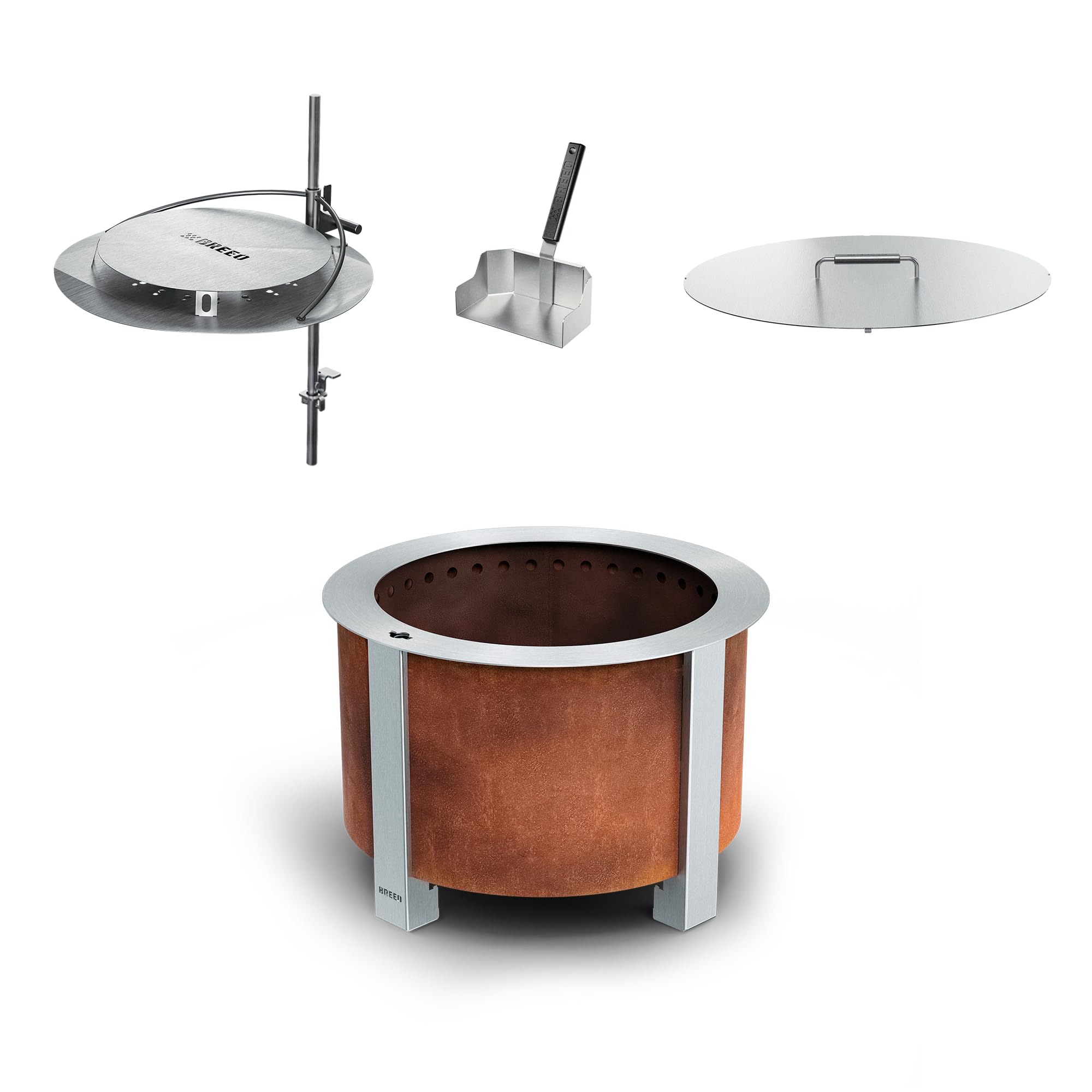 Breeo Smokeless FIrePit Warmth Bundle (X Series 24 Corten Steel, Heat Deflector, Ash Shovel, & Lid) | 27.5 inch Smokeless Fire Pit for Outside | Ideal for Families