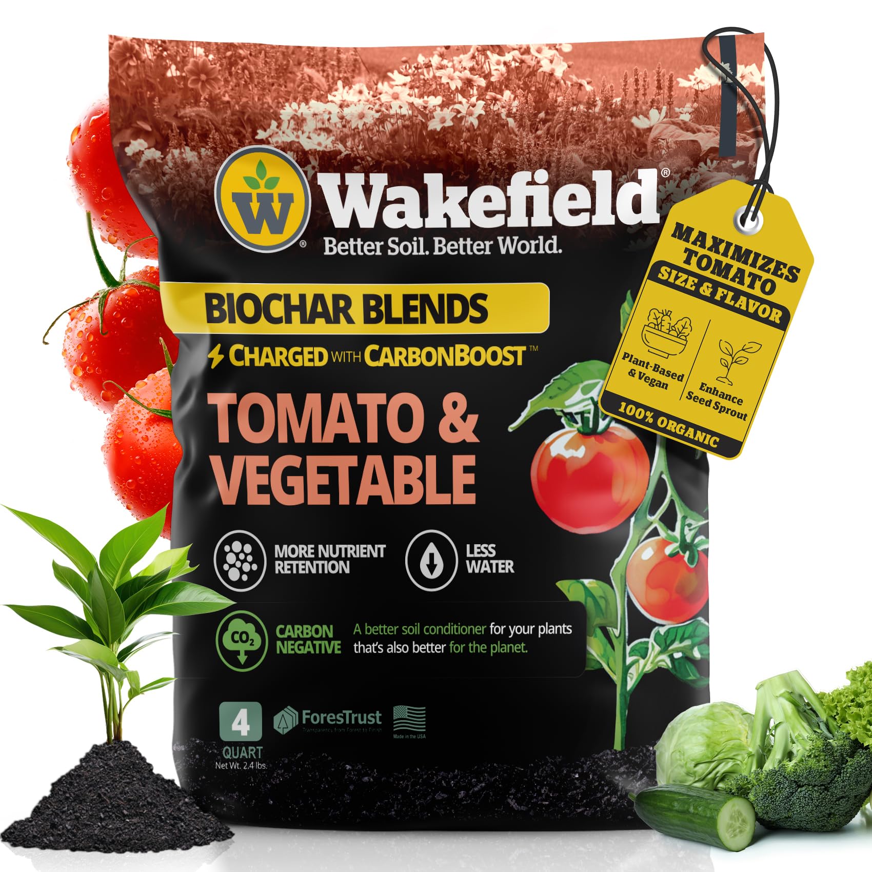 Wakefield Premium Biochar Blend – Organic Potting Soil for Vegetables, Tomatoes & Gardens – Potting Mix Enriched with Humic Acid & CarbonBoost – Versatile Top Soil for Indoor & Outdoor Plants-4quarts