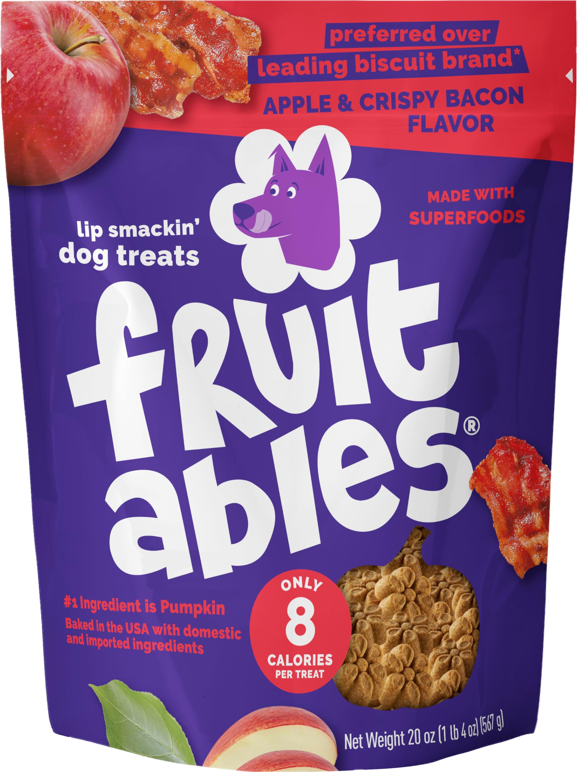 Fruitables Baked Dog Treats, Healthy Pumpkin Treat for Dogs, Low Calorie & Delicious, Free of Wheat, Corn and Soy, Made in The USA, Apple and Crispy Bacon Flavor, 20oz
