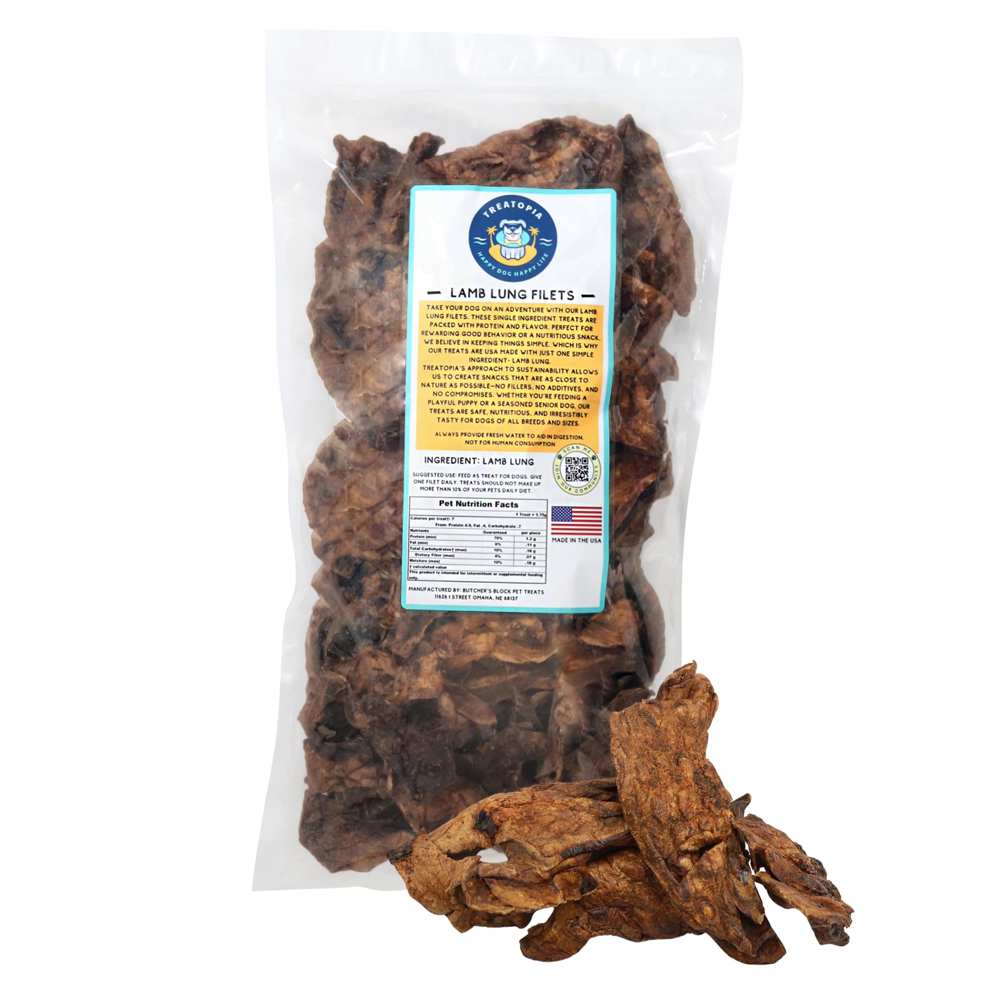 TREATOPIA Lamb Lung Filet Dog Treats - All-Natural, Sustainable, Healthy, High Protein, Hand-Trimmed, Slow-Roasted, Made in The USA, Nutritious, No Additives, No Fillers