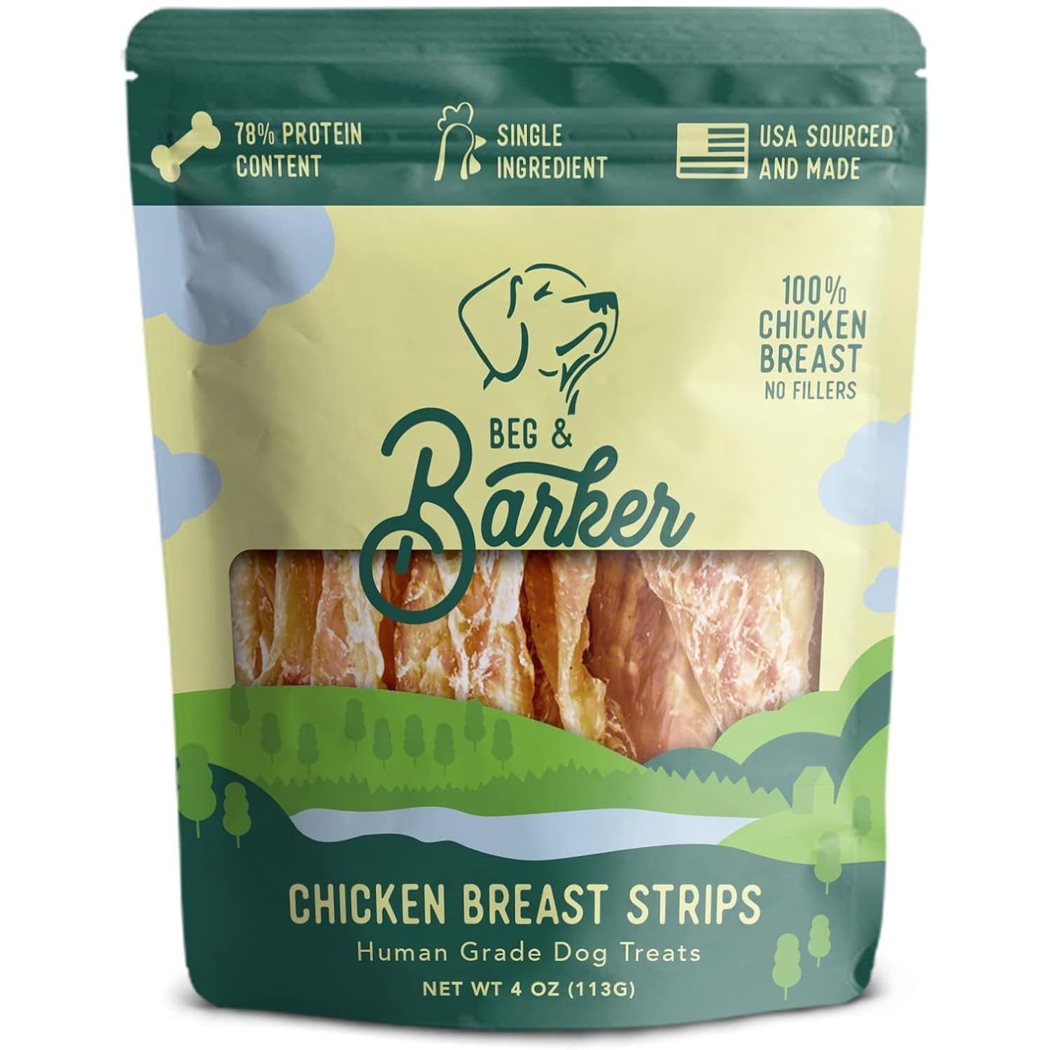 Beg & Barker Chicken Jerky for Dogs - Dog Training Treats - Natural Dog Treats Made in The USA - Grain Free, Diabetic-Friendly, High Protein, Sugar-Free (Chicken Dog Jerky)