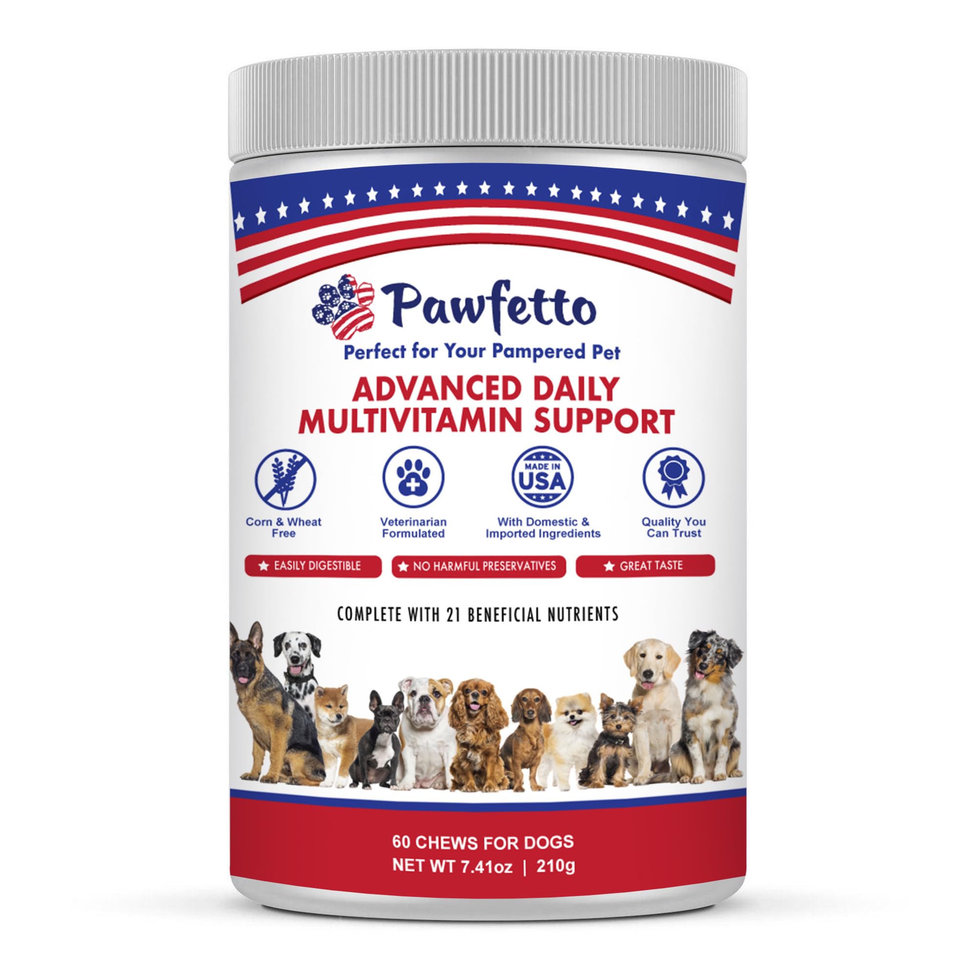 Pawfetto Advanced Daily Multivitamin Support for Dogs, Multi-Vitamin and Mineral Supplement with Essential Fatty Acids and Antioxidants, Vegetable Flavour, Perfect For Your Pampered Pet (60 Dog Chews)