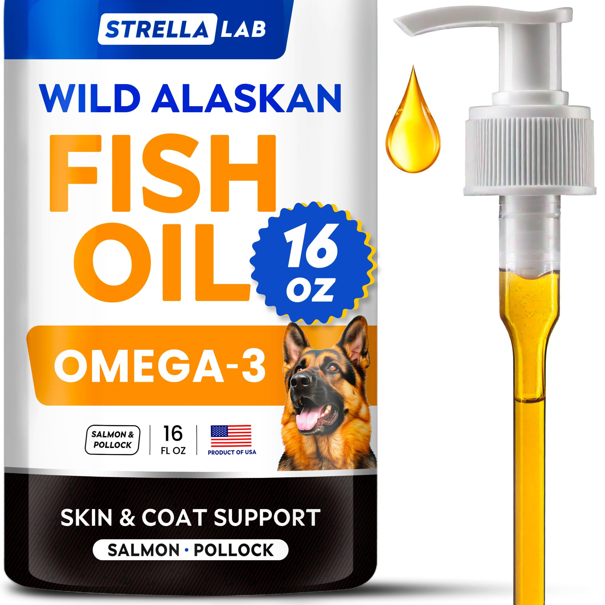 STRELLALAB Fish Oil for Dogs & Cats - Natural Omega-3 - Skin & Coat Support - Liquid Food Supplement for Pets - Natural EPA + DHA Fatty Acids for Joint Function, Immune & Heart Health 16oz - Pollock