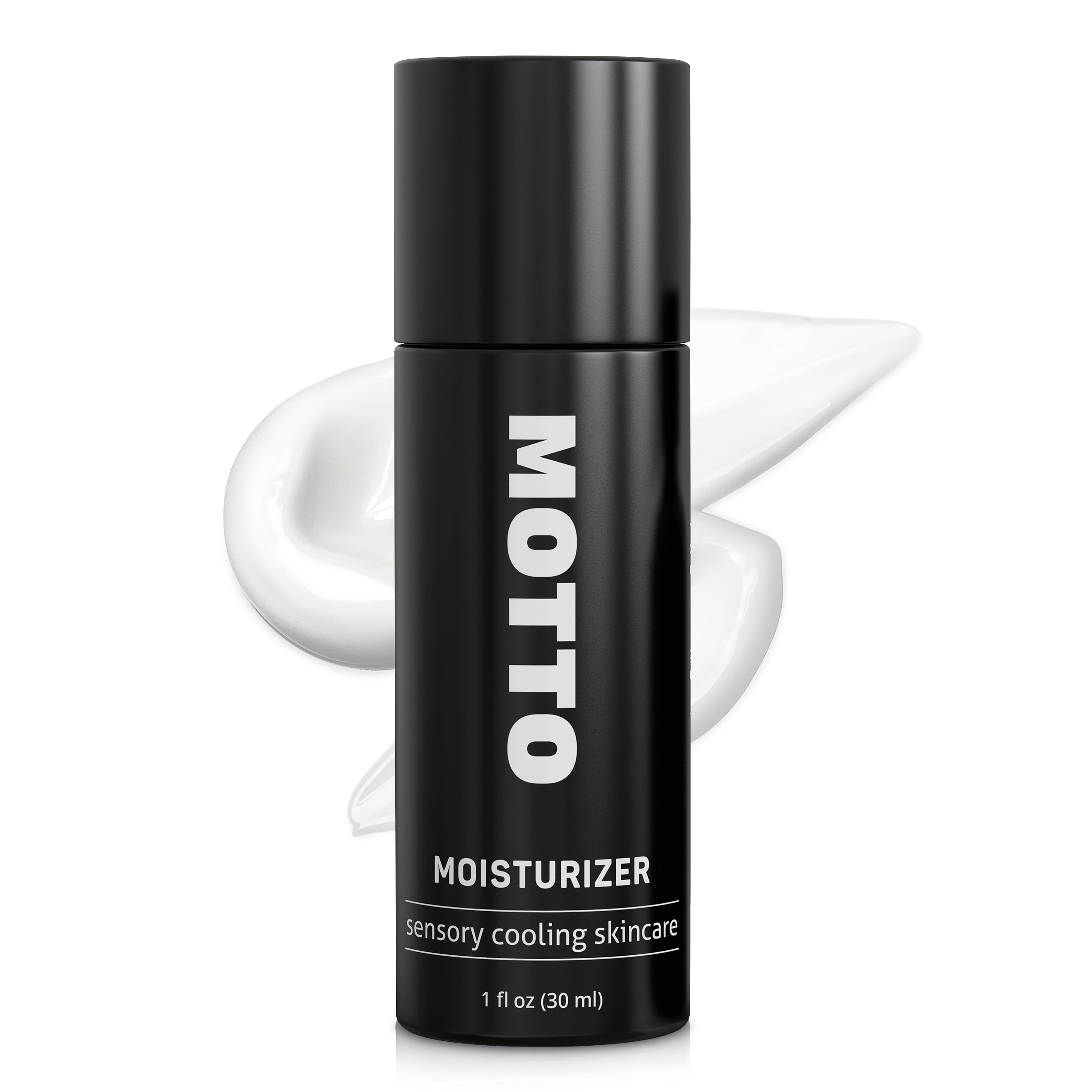 MOTTO Mens Face Cream Moisturizer- ICE-COLD - Made in USA - Hyaluronic Acid, Vitamin E, Menthol, Peppermint, & Eucalyptus, Coffee Seed Extract, Day & Night Moisturizing, 1 oz