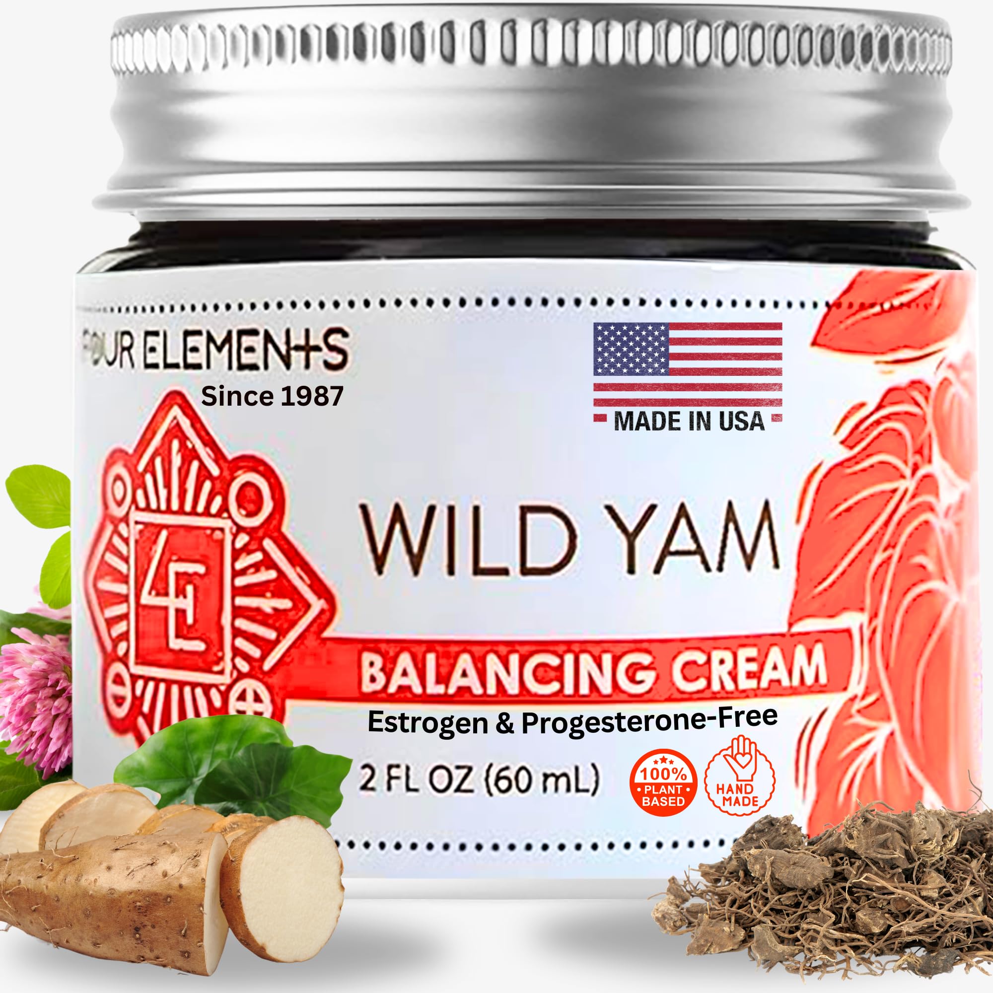 Wild Yam Cream for Hormone Support 2 Oz | Four Elements 4E Organic Wild Yam Balancing Cream for Women | Menopause & PMS Support - Estrogen & Progesterone Free | Proudly Farmed, Crafted & Made in USA