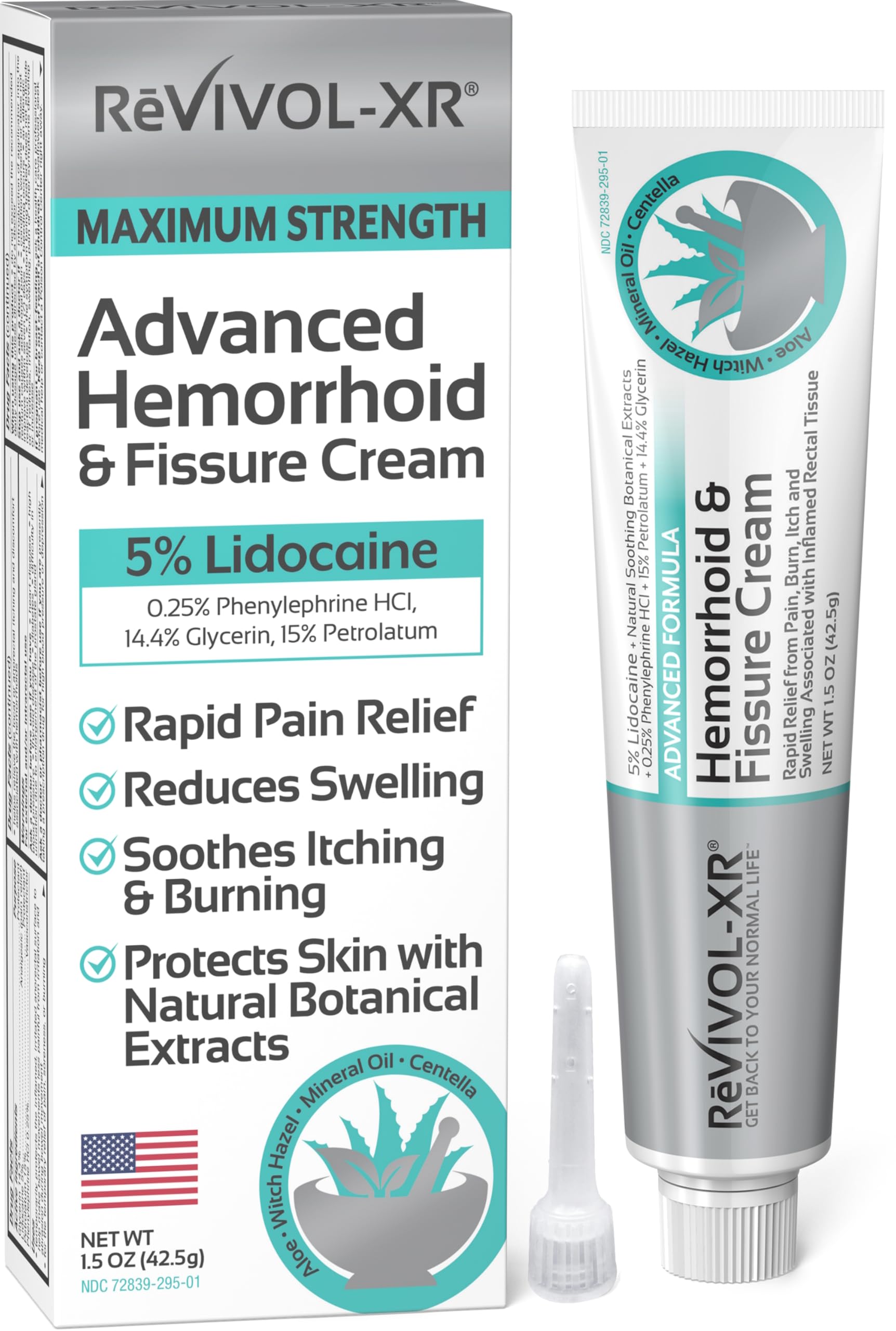 REVIVOL-XR Advanced Hemorrhoid Treatment. 5% Lidocaine + Shrinks + Protects Skin + Aloe + Witch Hazel + Botanicals, External & Internal Use. Most Complete OTC Ointment & Fissure Cream, USA Made.