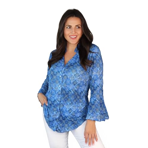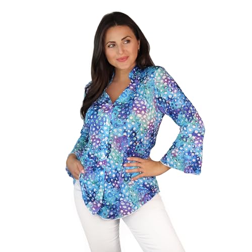 SNO SKINS Spring/Summer Collection Designer Print Crinkle Button-Down Shirt (Bubbles)