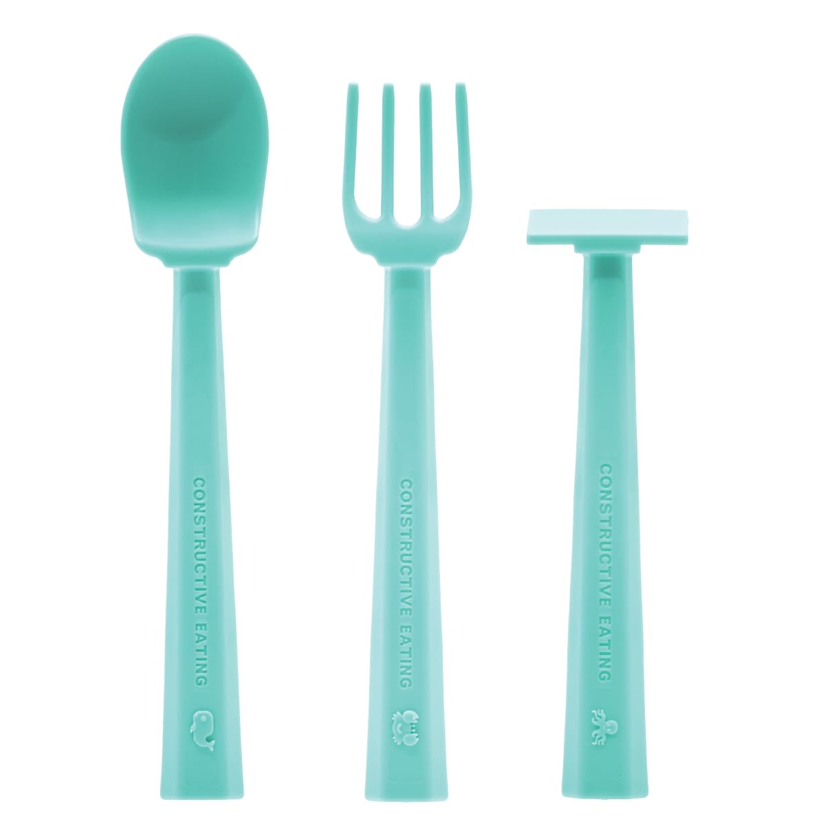 Constructive Eating Training Utensils - Made in USA - Seafoam Green - Turtle
