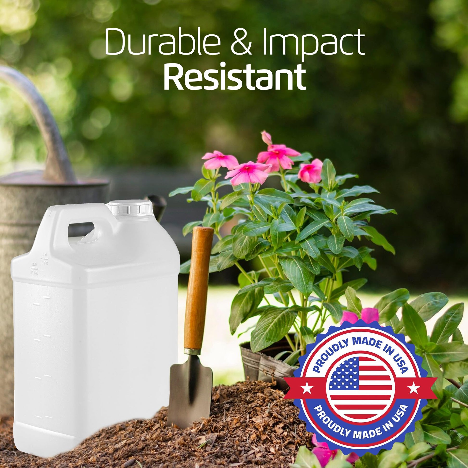 - Made in USA : Manufactured entirely in the USA, this 2.5 gallon water jug and lid deliver dependable quality and durability for industrial, automotive, and home use.