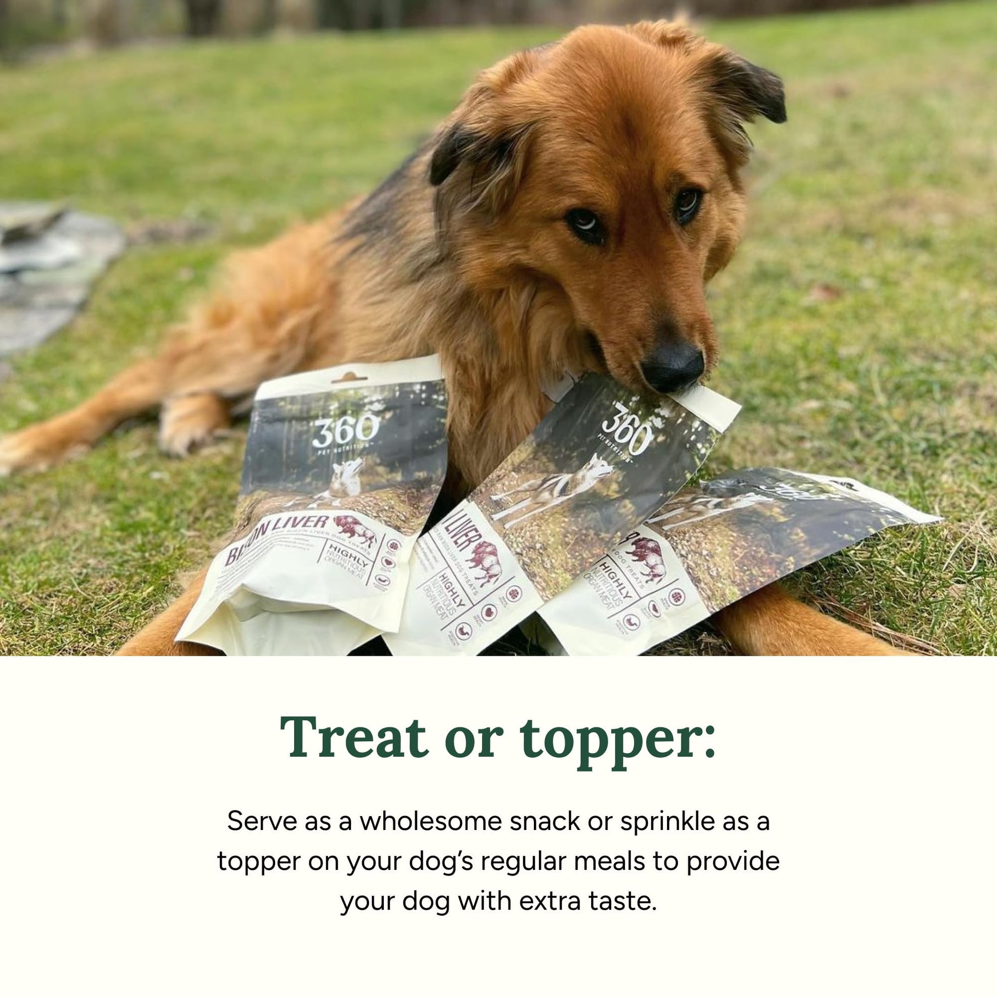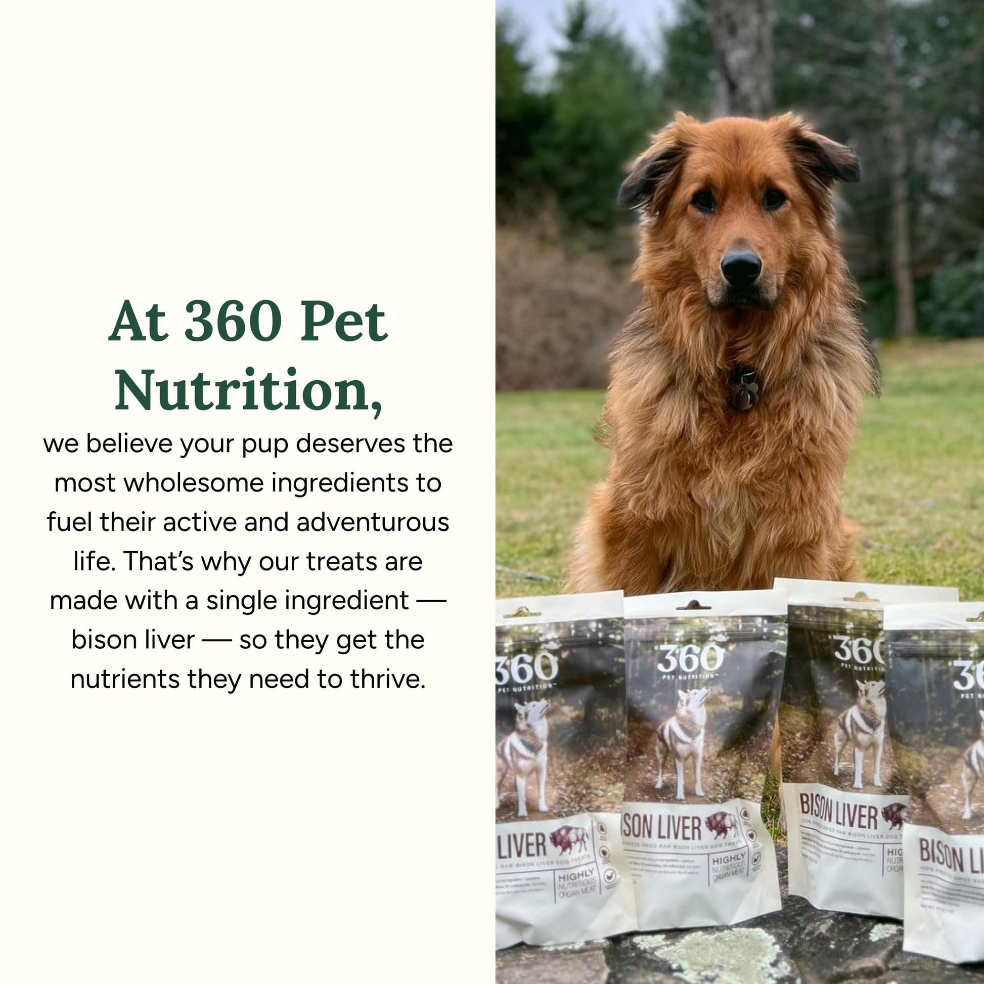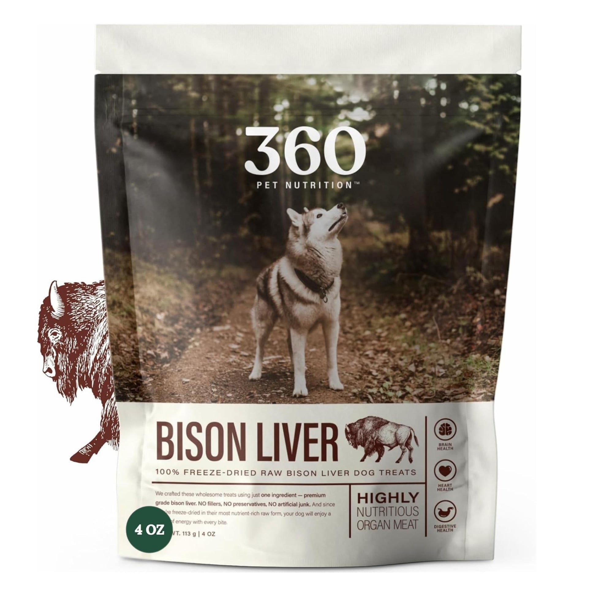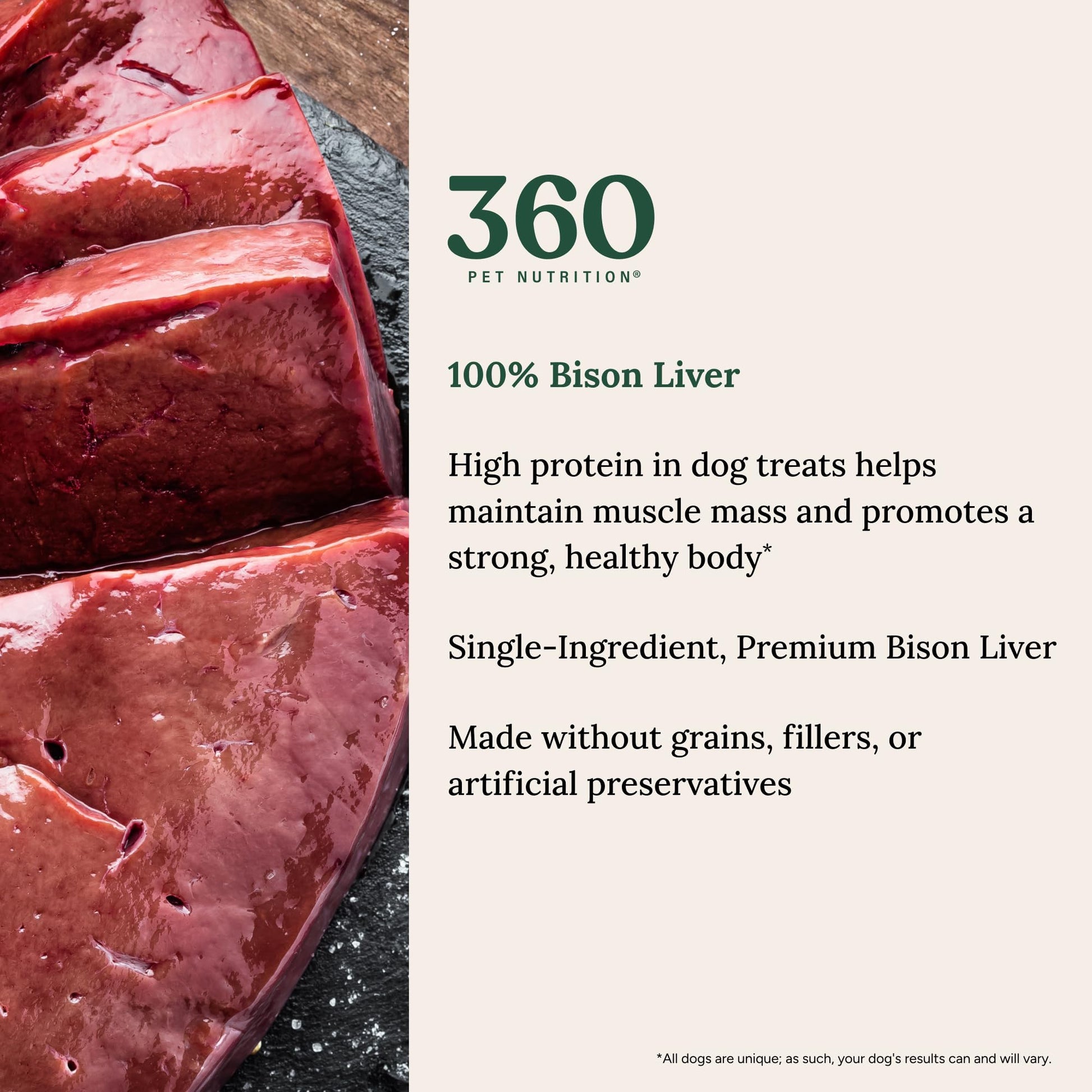 360 Pet Nutrition Freeze-Dried Raw Bison Liver Dog or Cat Treats/Bites, 1-Ingredient, High Protein, No Grain, Made in USA, All-Natural, 4 oz (Bison Liver), Healthy, Training Snacks, Premium Quality.
