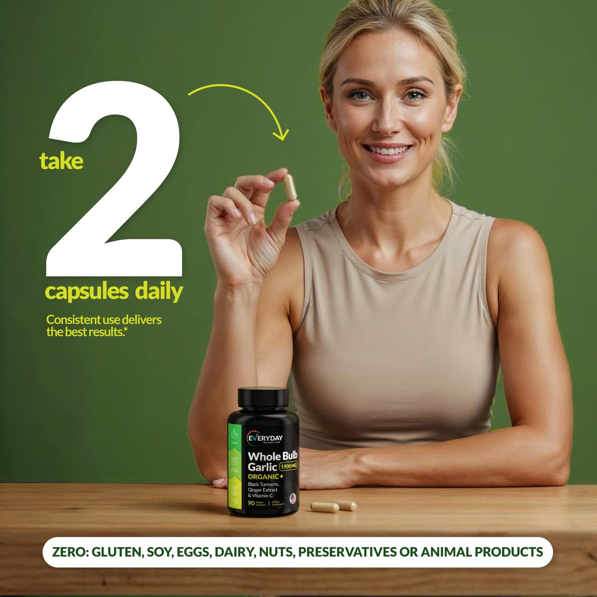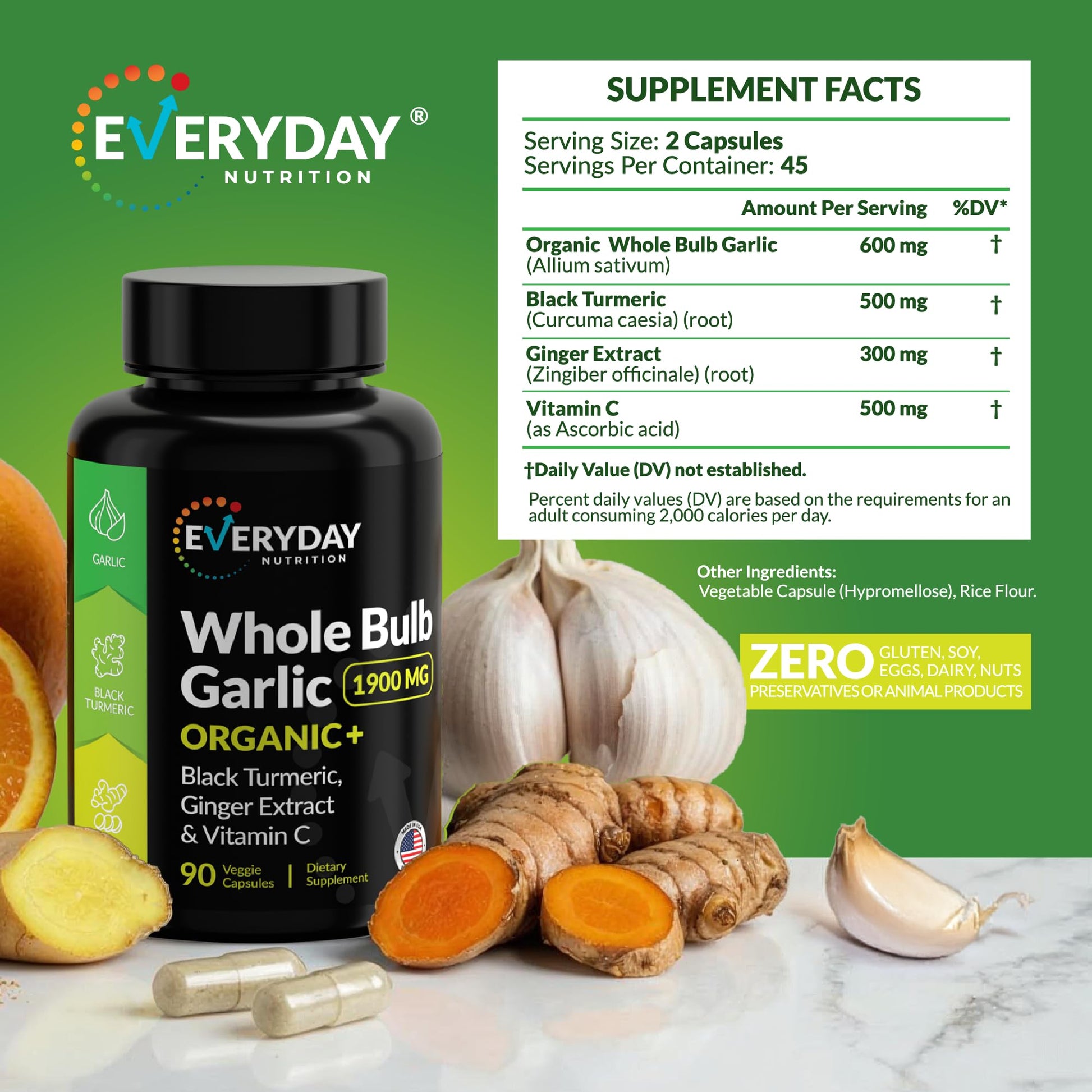 - 4-in-1 Premium Wellness Formula – Combines organic whole bulb garlic, rare black turmeric, concentrated ginger extract, and vitamin C in vegan capsules to support overall health, immune system, and daily vitality.