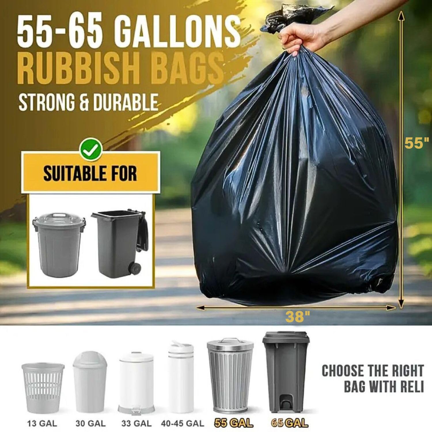 - 【Extra Large Capacity】: These 55-60 gallon black trash bags can take a large volume of waste or oversized items, catering to various waste disposal needs with ease. Measuring 38”x55”. Carry more, Waste Less!