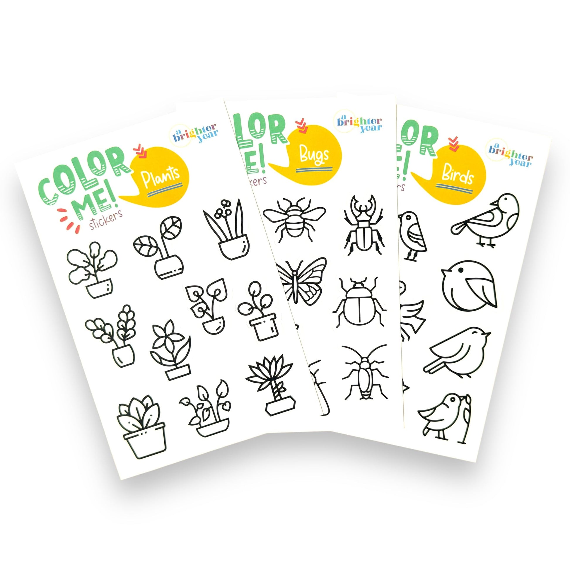 A Brighter Year Color-Your-Own Sticker Bundle, Birds, Bugs & Botany Edition - 3-Pack of 8.5” x 5.5” Sheets of 10 Stickers Each – Stickers are 1.5-2” x 2-3” - Notebooks, Planner, Gift