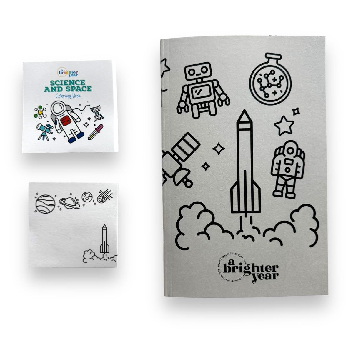 A Brighter Year Space Edition Bundle - Adult Mini Coloring Book (3" x 3", 50 Pages), Lined Notebook, & Post It Notes (25-3” x 3”) Stress & Anxiety Relief - for Mindfulness, Relaxation, Gift, Travel