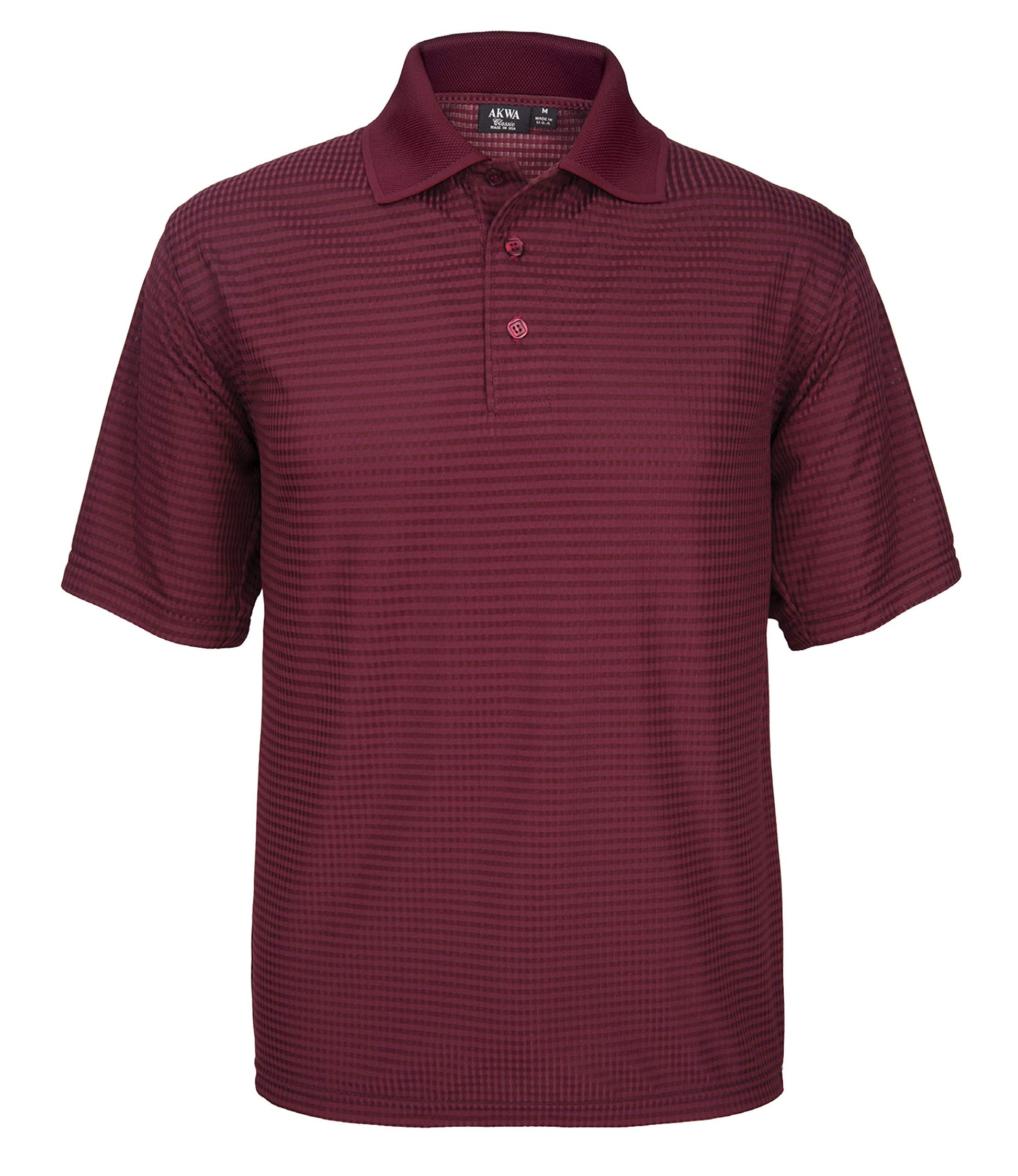 Akwa Made in USA Men's Dry Wicking Polo Shirt with Check Pattern and No-Curl Collar Burgundy