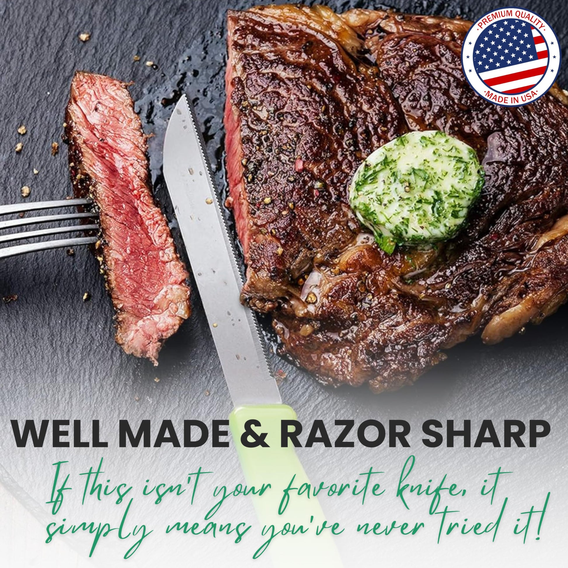 Alfi All-Purpose Knives Aerospace Precision Pointed Tip - Home And Kitchen Supplies - Serrated Steak Knives Set | Made in USA