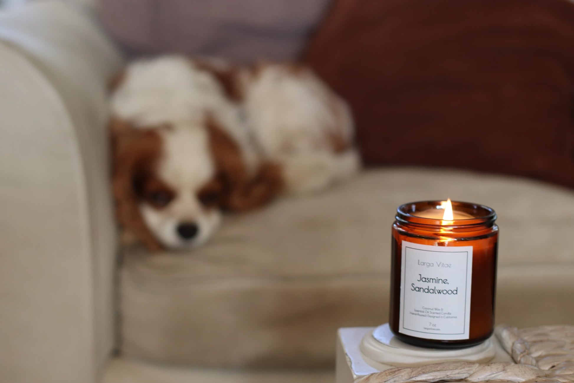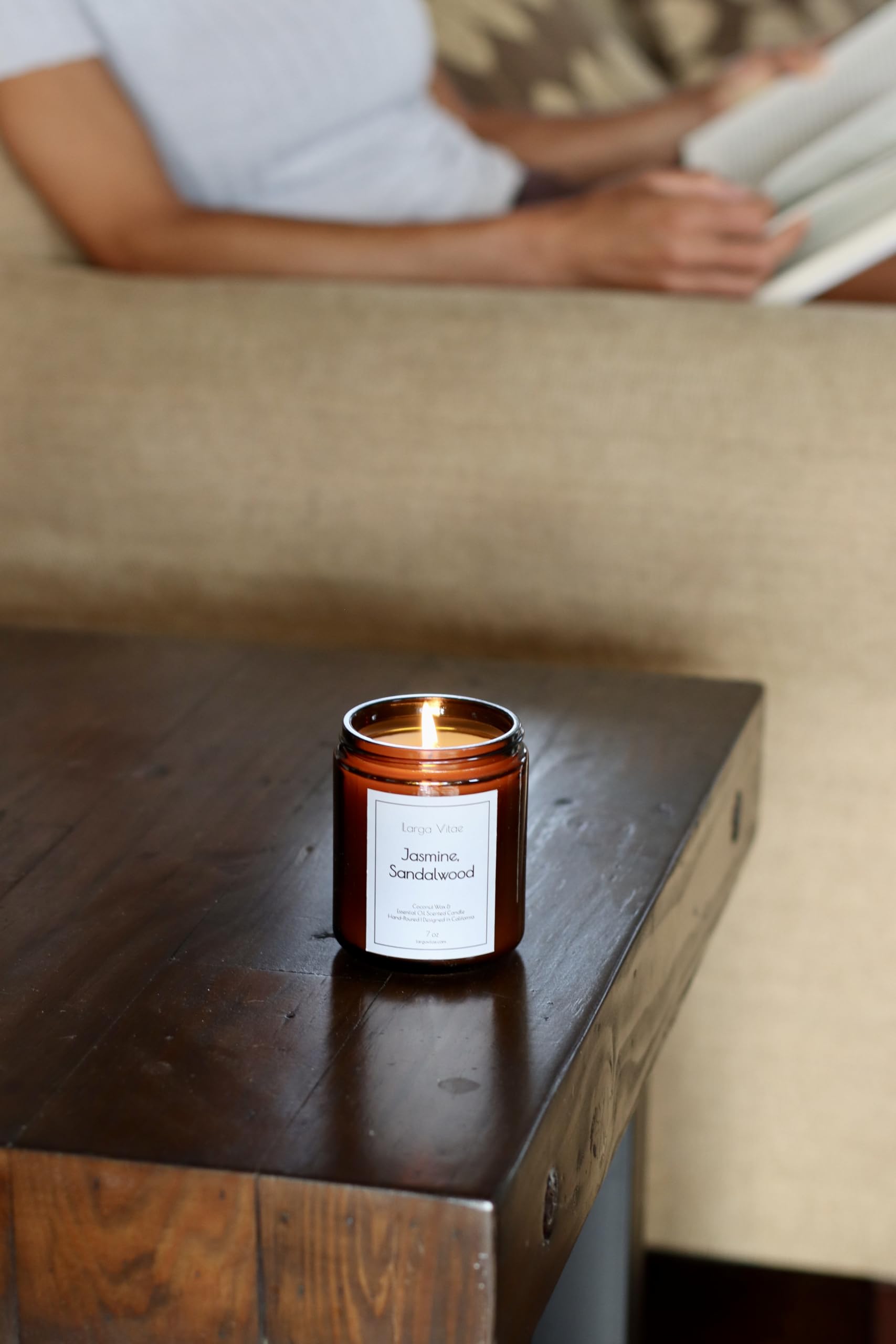 All-Natural Jasmine, Sandalwood Aromatherapy Essential Oil Candle, Safe for People and Pets, Made with Pure Sustainable Organic Vegan Coconut Wax, Allergy Friendly, Non Toxic, Zero Waste
