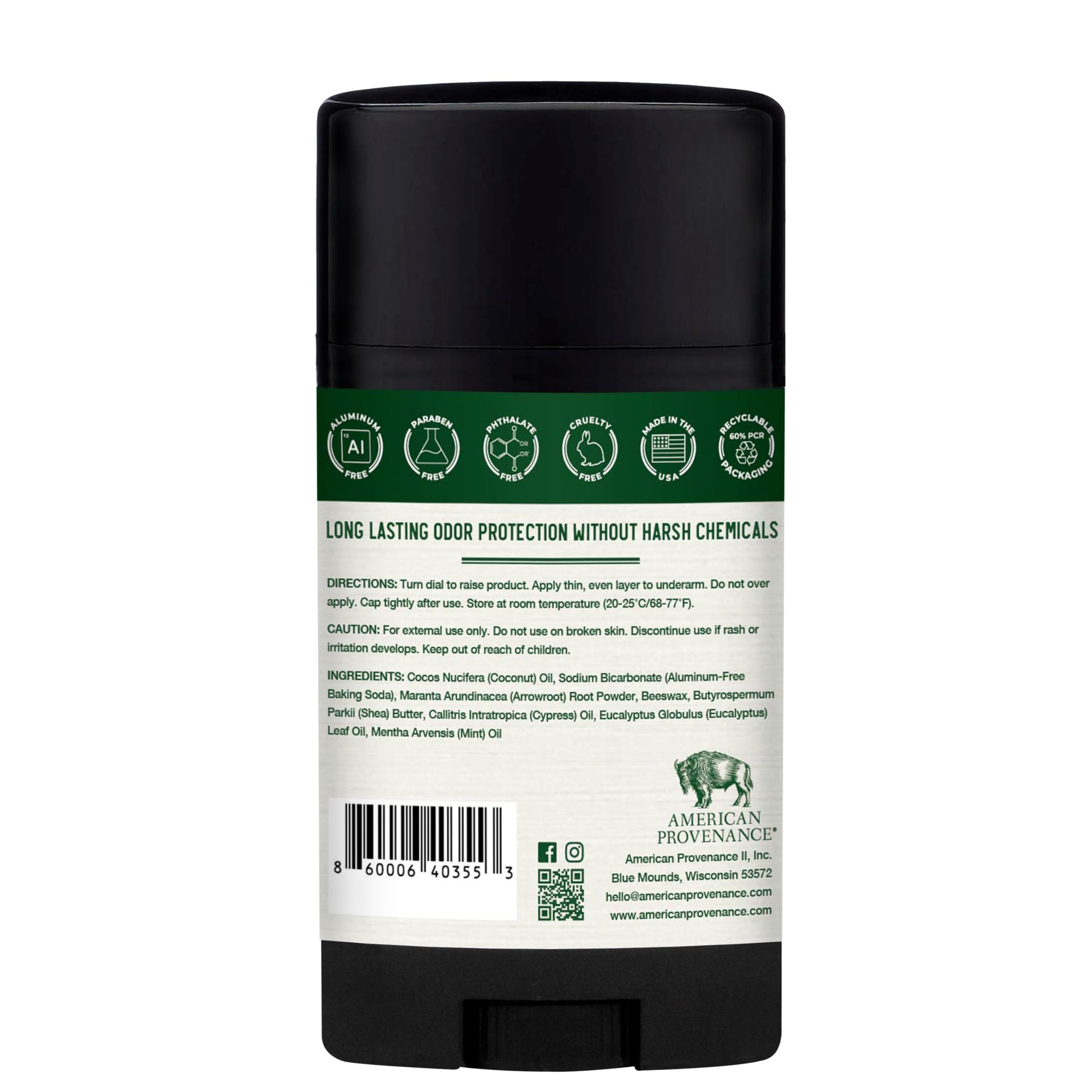 American Provenance Aluminum Free Natural Deodorant For Women and Men - Eucalytus and Mint - 24 Hour Odor Protection Cruelty Free - Made in the USA (1 pack)