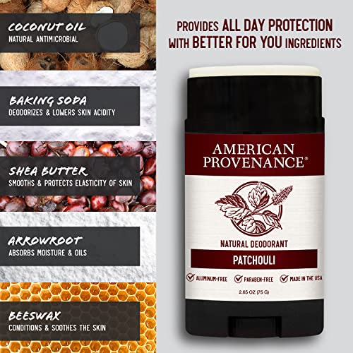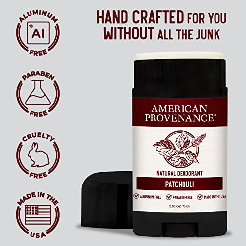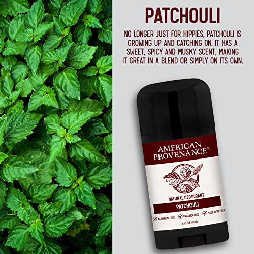 American Provenance Aluminum Free Natural Deodorant For Women and Men - Patchouli - 24 Hour Protection - Cruelty Free - Made in the USA (1 pack)