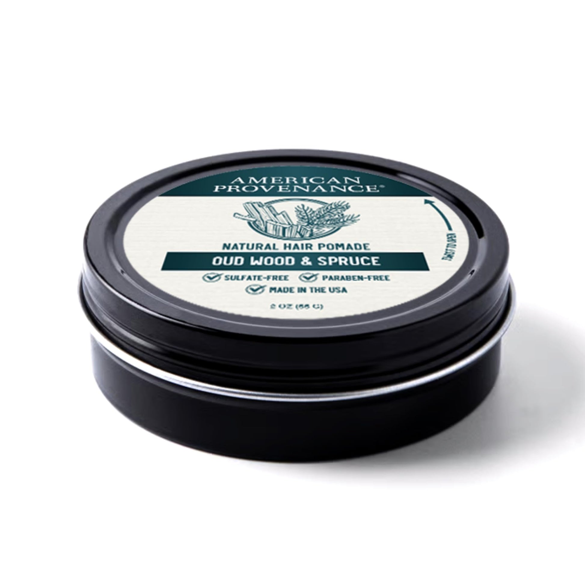 American Provenance Premium Natural Hair Pomade for Women and Men with Shea Butter, Jojoba Oil, Argan Oil - Grooming Balm that Conditions and Styles Hair | Oud Wood & Spruce | 2 oz (Pack of 1)