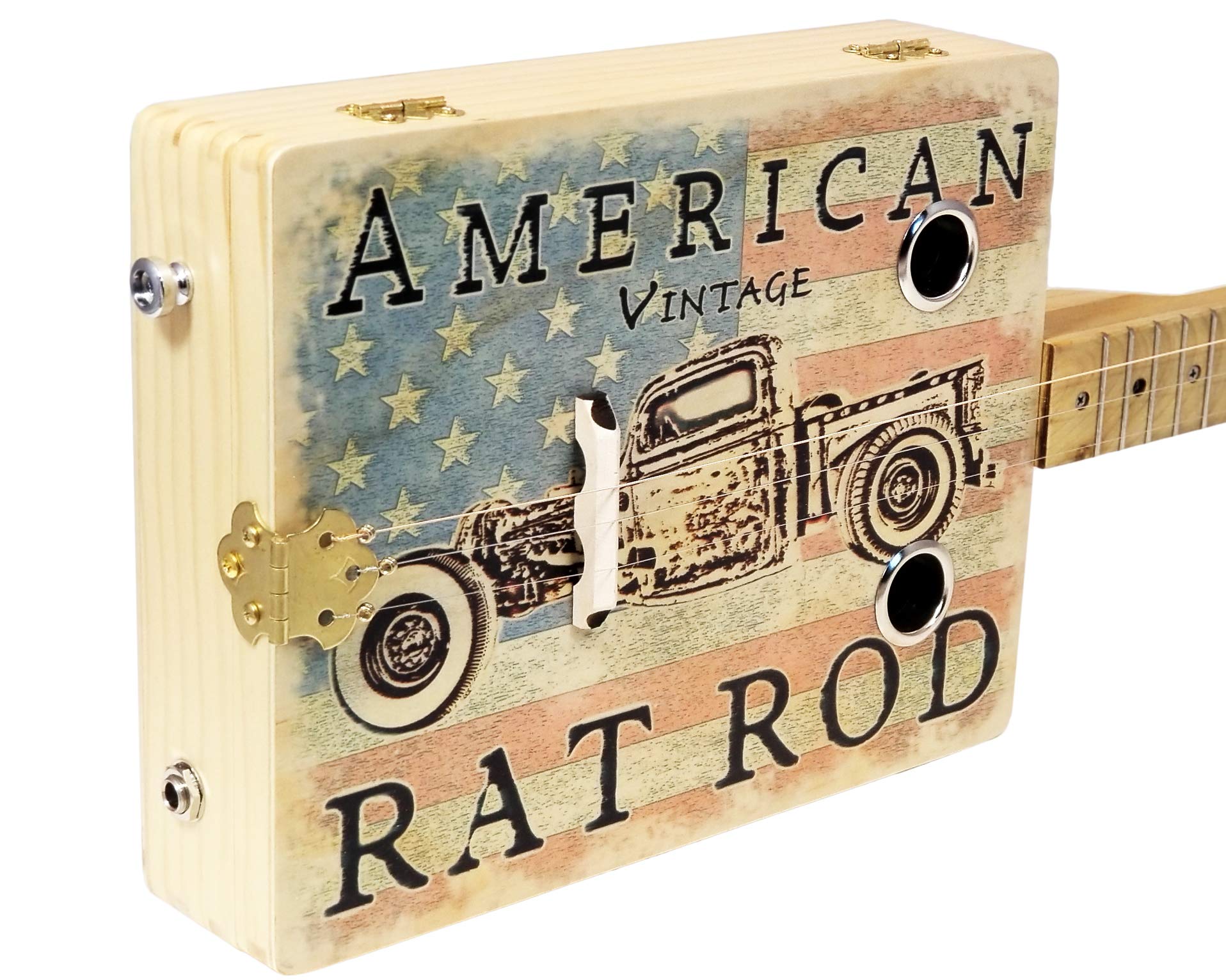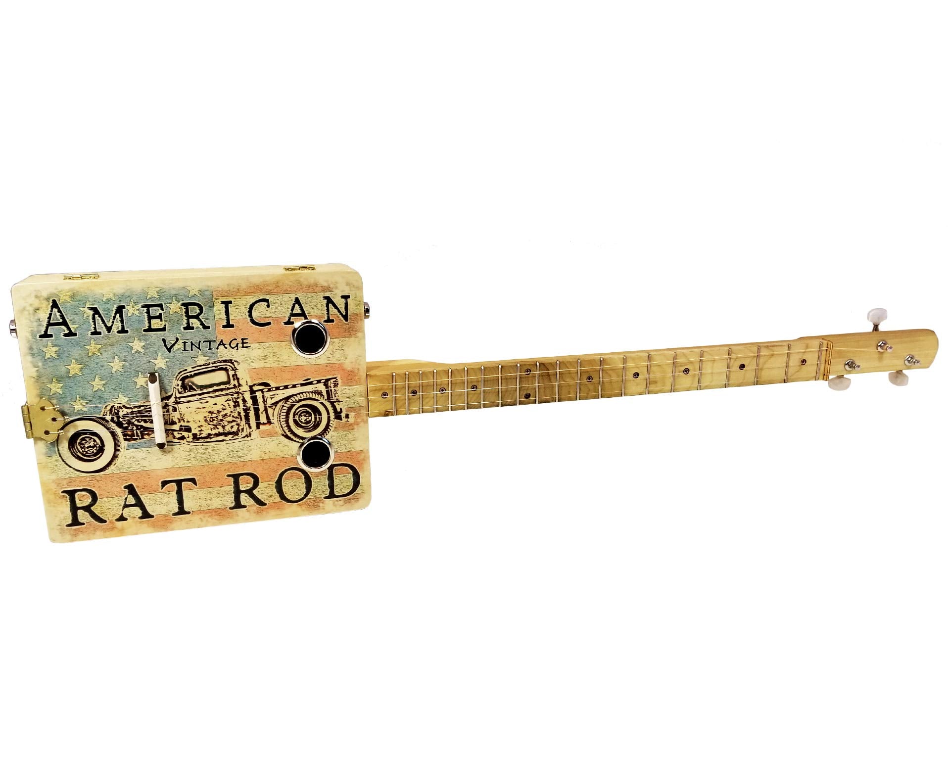 "American Rat Rod" 3-string Acoustic-Electric Cigar Box Guitar - Fun to Play, Made in the USA!