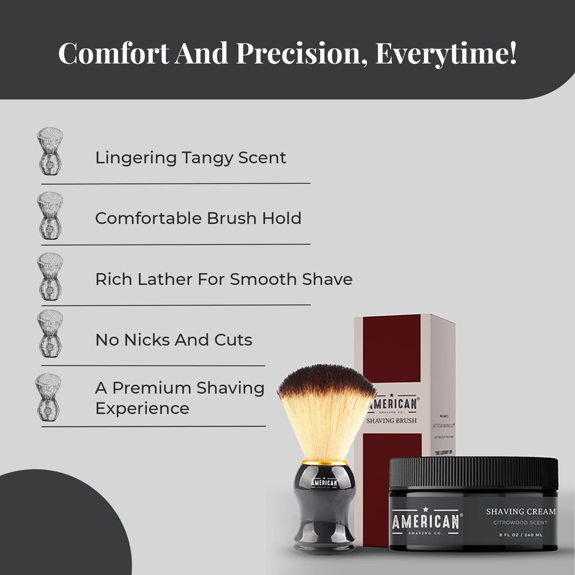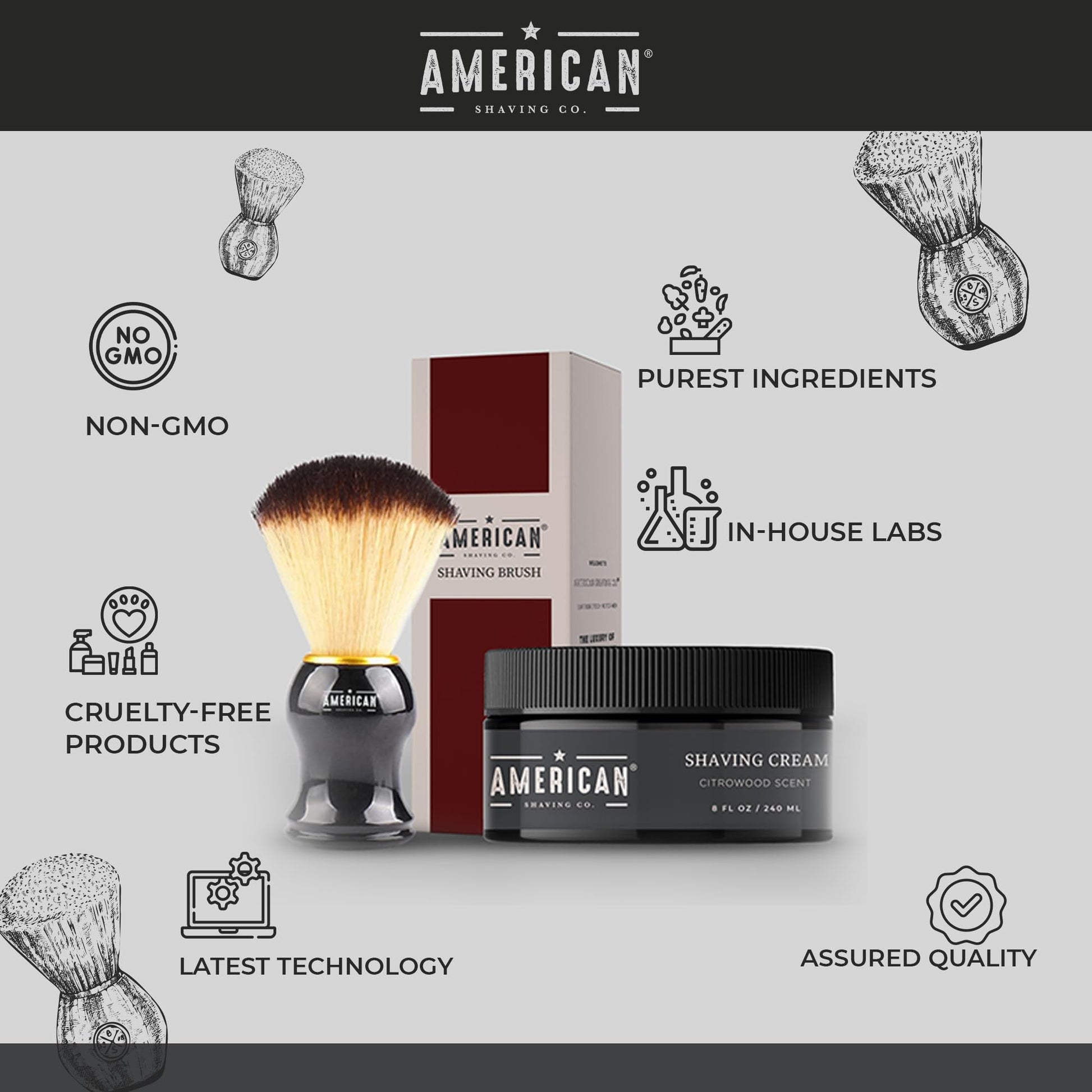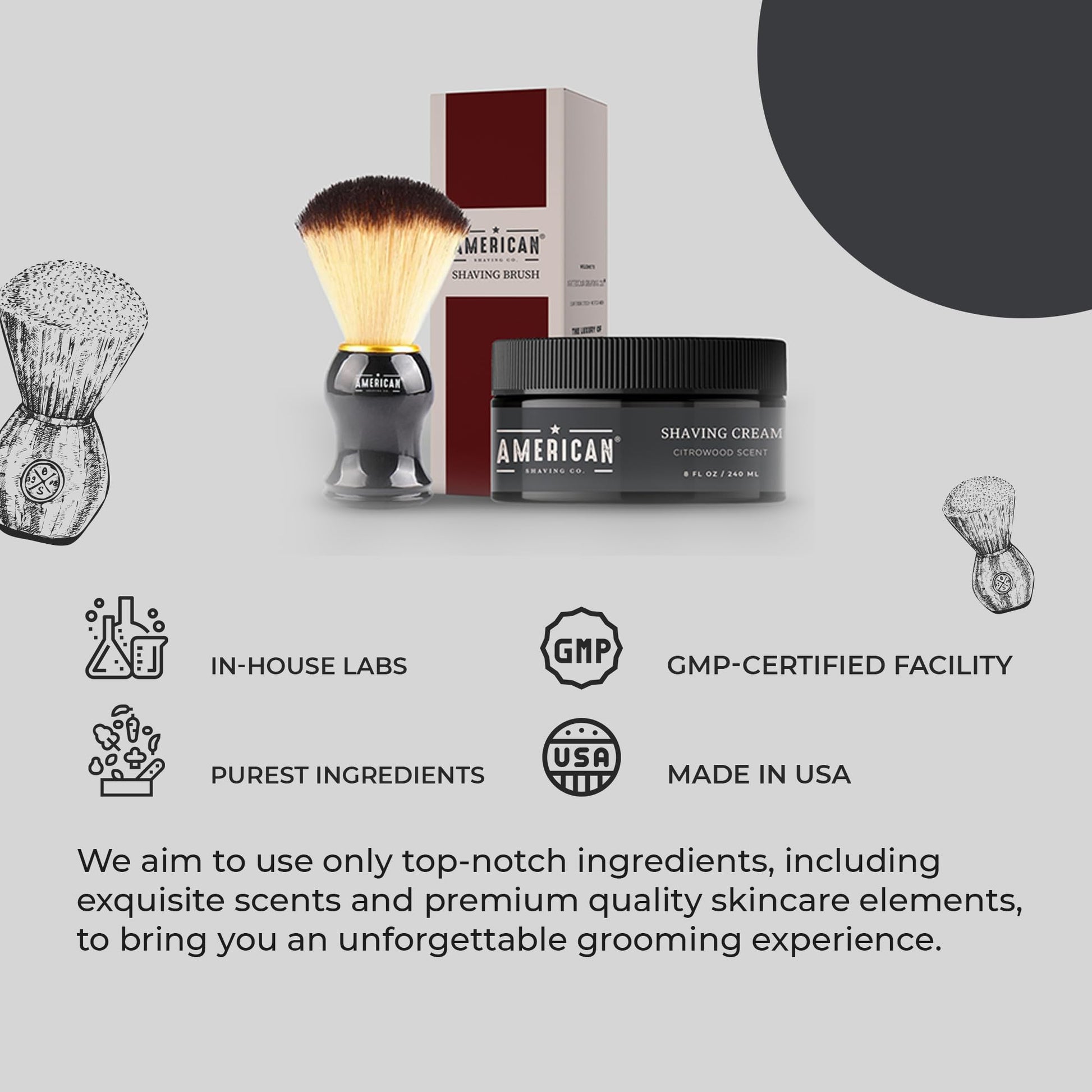 American Shaving Co. Citrowood Shaving Cream For Men With Shaving Brush 8 oz, Made in USA, Easy Application, Quality Potent Ingredients, Non-GMO, GMP Certified, Cruelty-Free Products