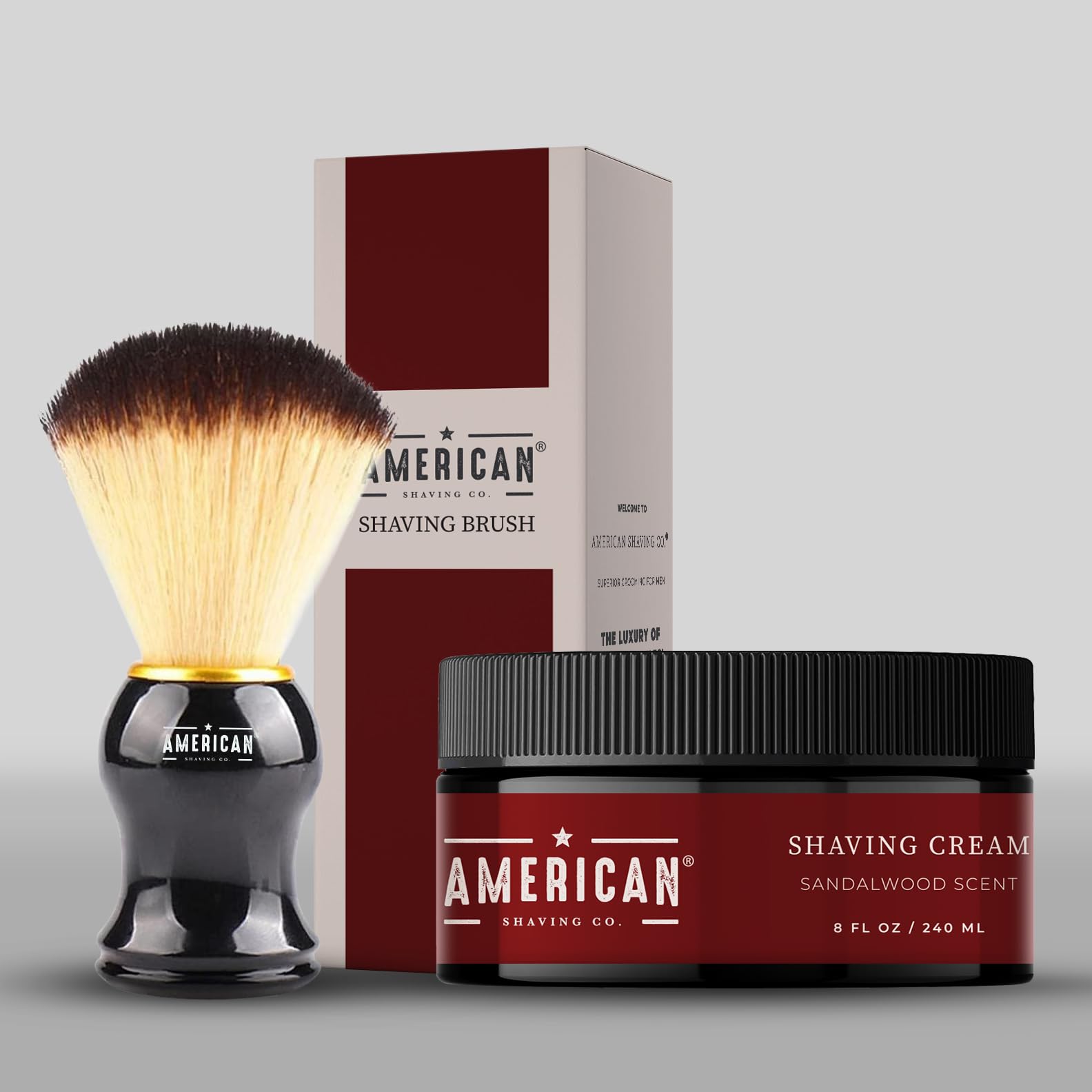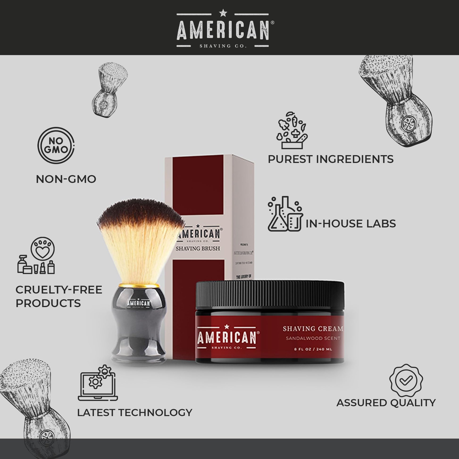 American Shaving Co. Sandalwood Shaving Cream For Men With Shaving Brush 8 oz, Made in USA, Easy Application, Quality Potent Ingredients, Non-GMO, GMP Certified, Cruelty-Free Products