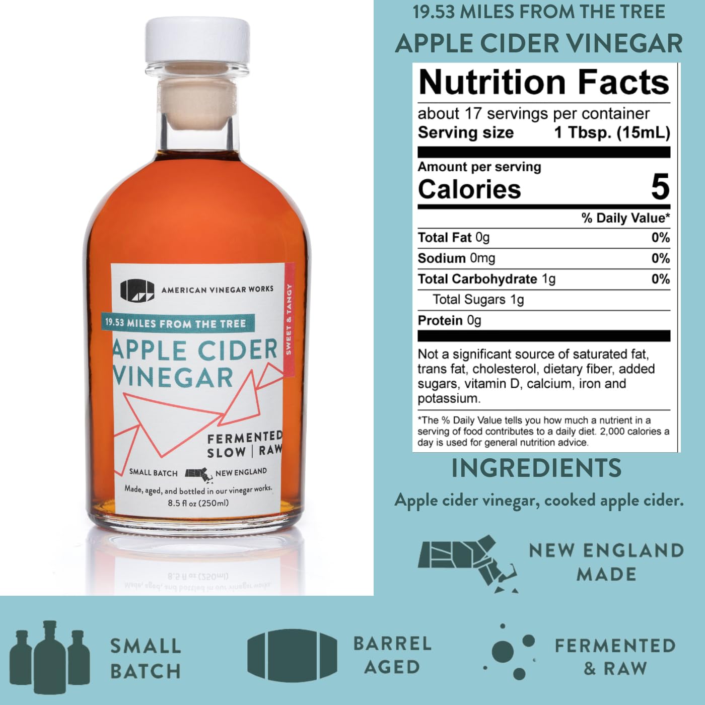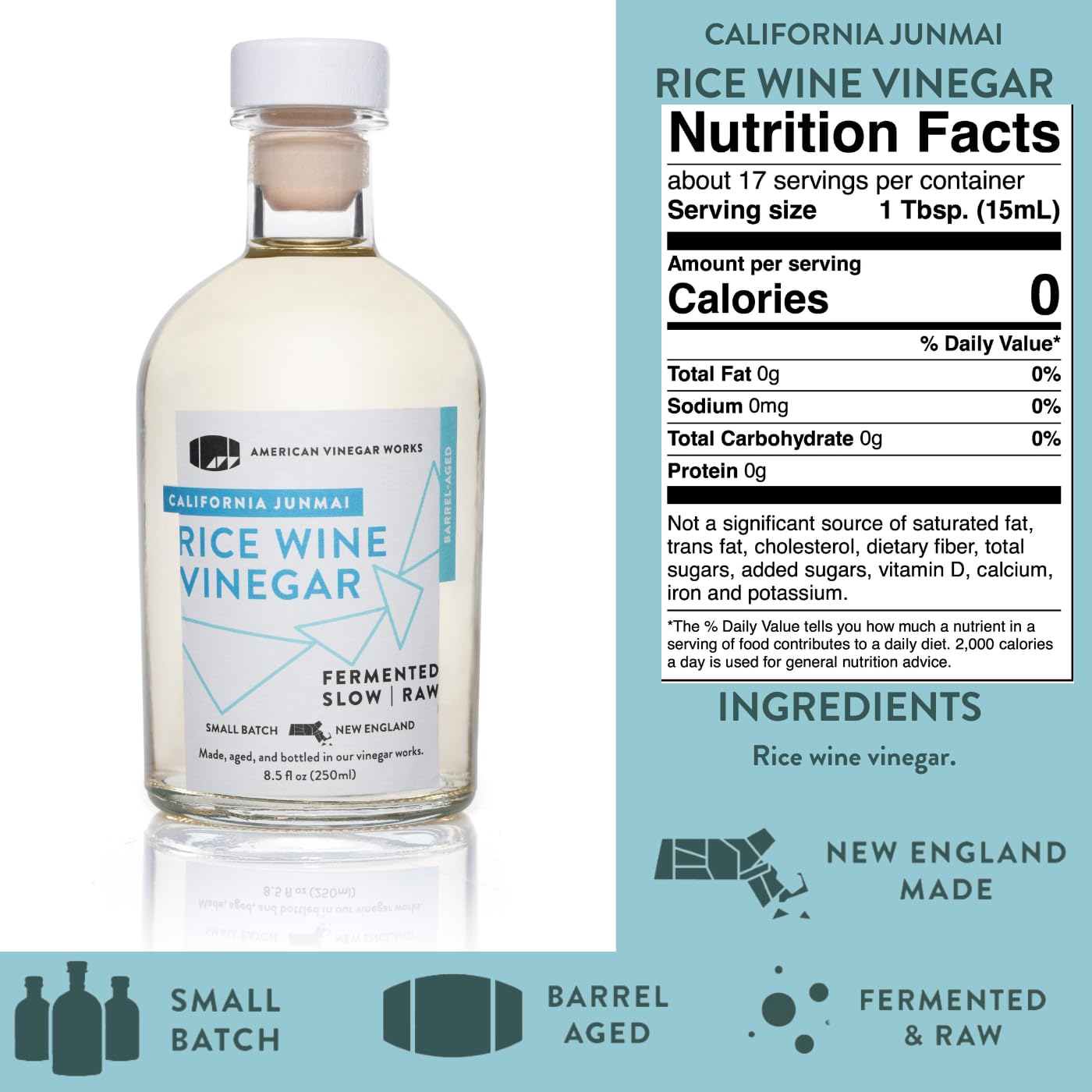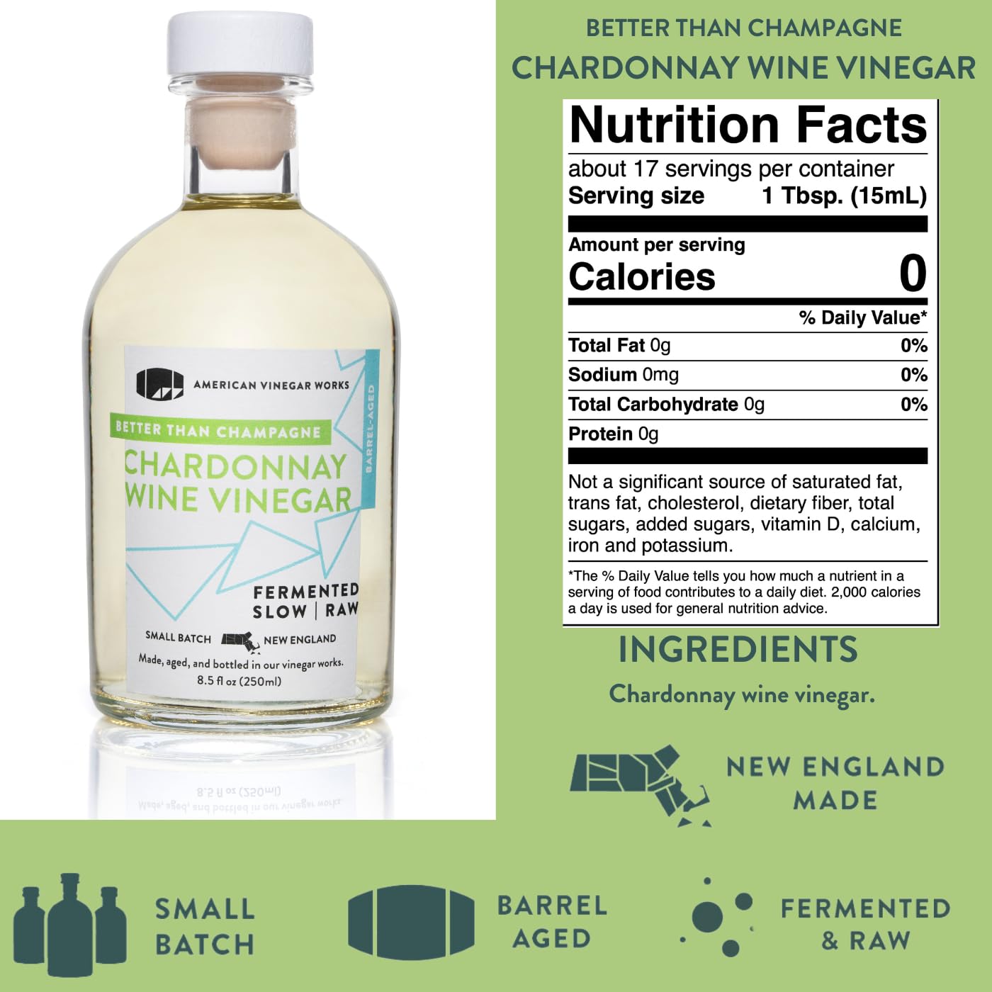 - We have embraced the value of time and revived a production method from the early 1800s to create vinegars that are naturally fermented and deliver complex flavors; All of our vinegars are produced, aged and bottled by us in our vinegar works here in the Bay State; No outsourcing, no co packing, no short cuts; It takes more effort, it takes more time, but the results are brilliant