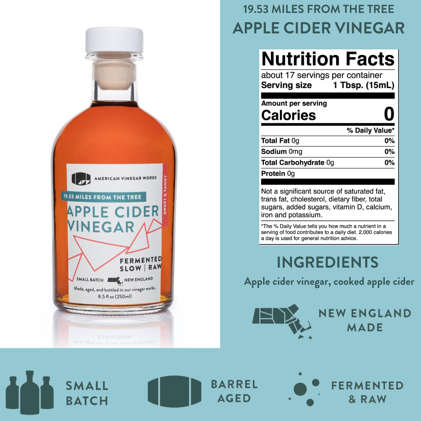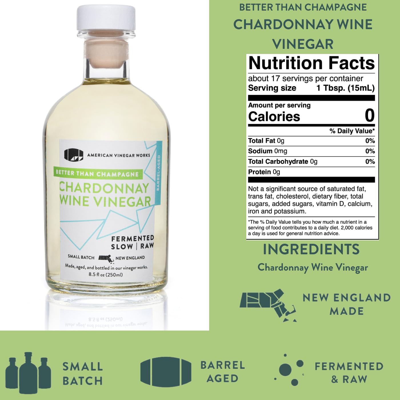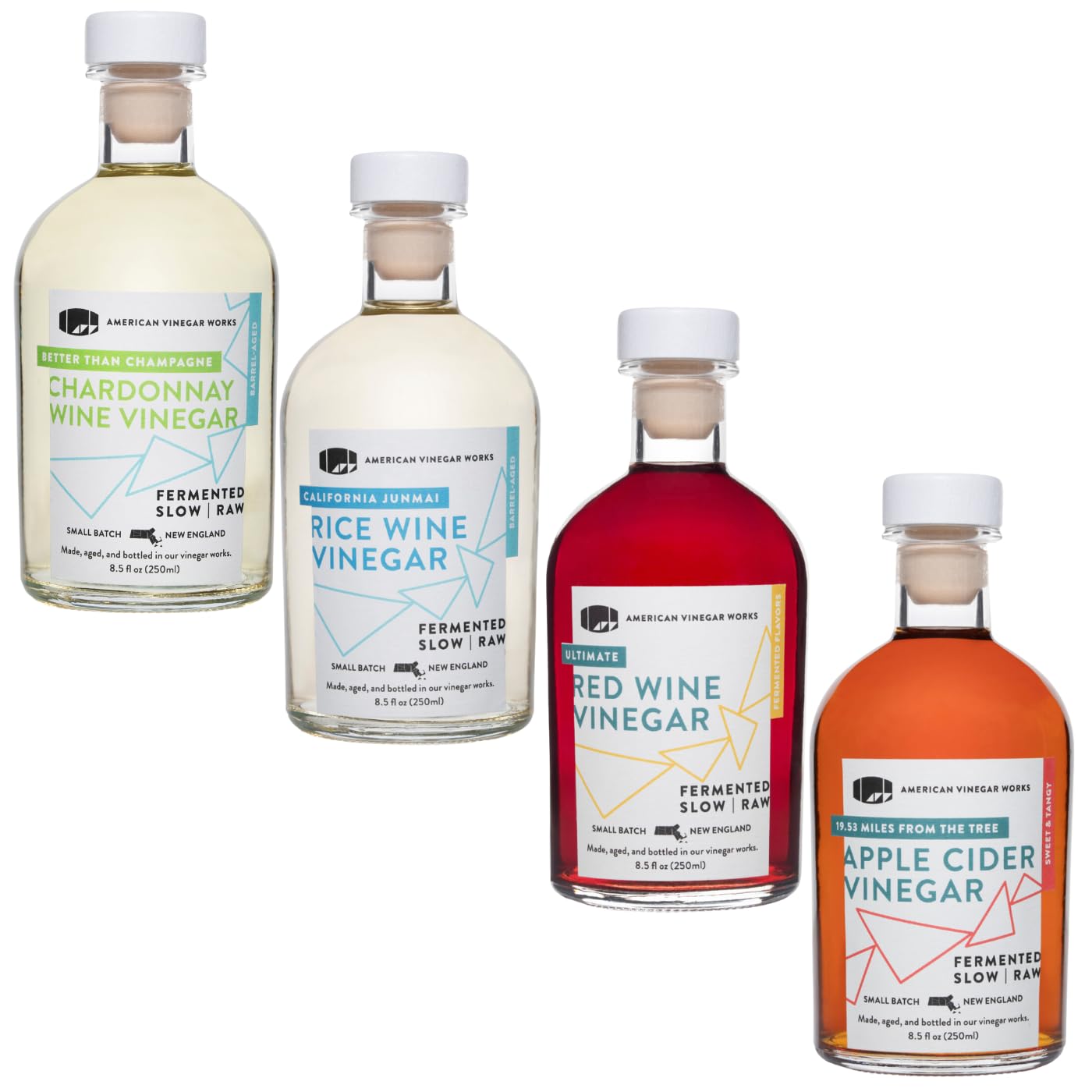 American Vinegar Works - Essentials Kitchen Vinegars - Includes Apple Cider, Red Wine, Rice Wine, and Chardonnay Wine Vinegars - Packed in a Custom Box - Great for Gifts - 8.5 oz Bottles - 4 Pack