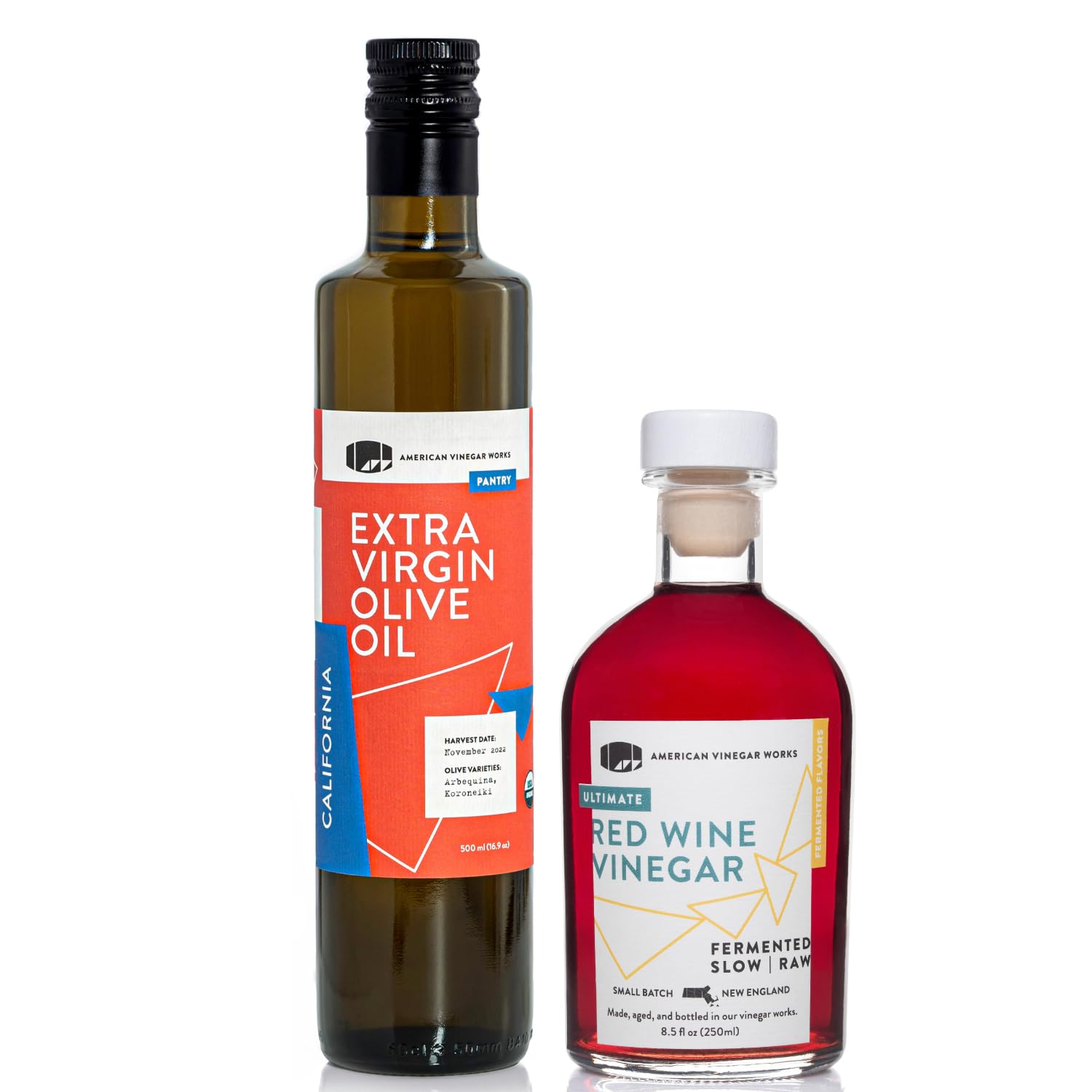 American Vinegar Works - Organic Extra Virgin Olive Oil & Red Wine Vinegar - 8.5oz of Red Wine Vinegar and 16.9oz of EVOO - Perfect ratio for Salad Dressing, Marinades, and More! Great Gift Giving