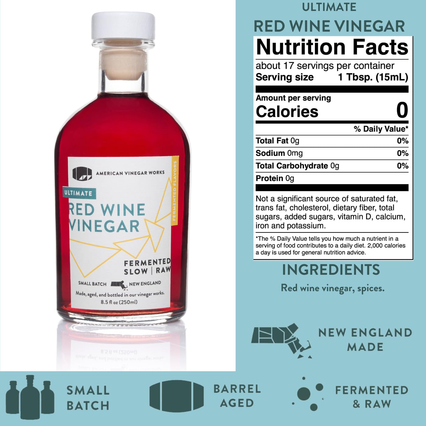 - Made with California Shiraz (or Syrah) this vinegar is a bold standout that will quickly become your go-to red wine vinegar for your most versatile vinaigrettes; This vinegar was co-fermented in small batches using a unique process from the early 1800s and aged in 25 gallon American oak barrels; We call it our Ultimate Red Wine Vinegar for a reason…